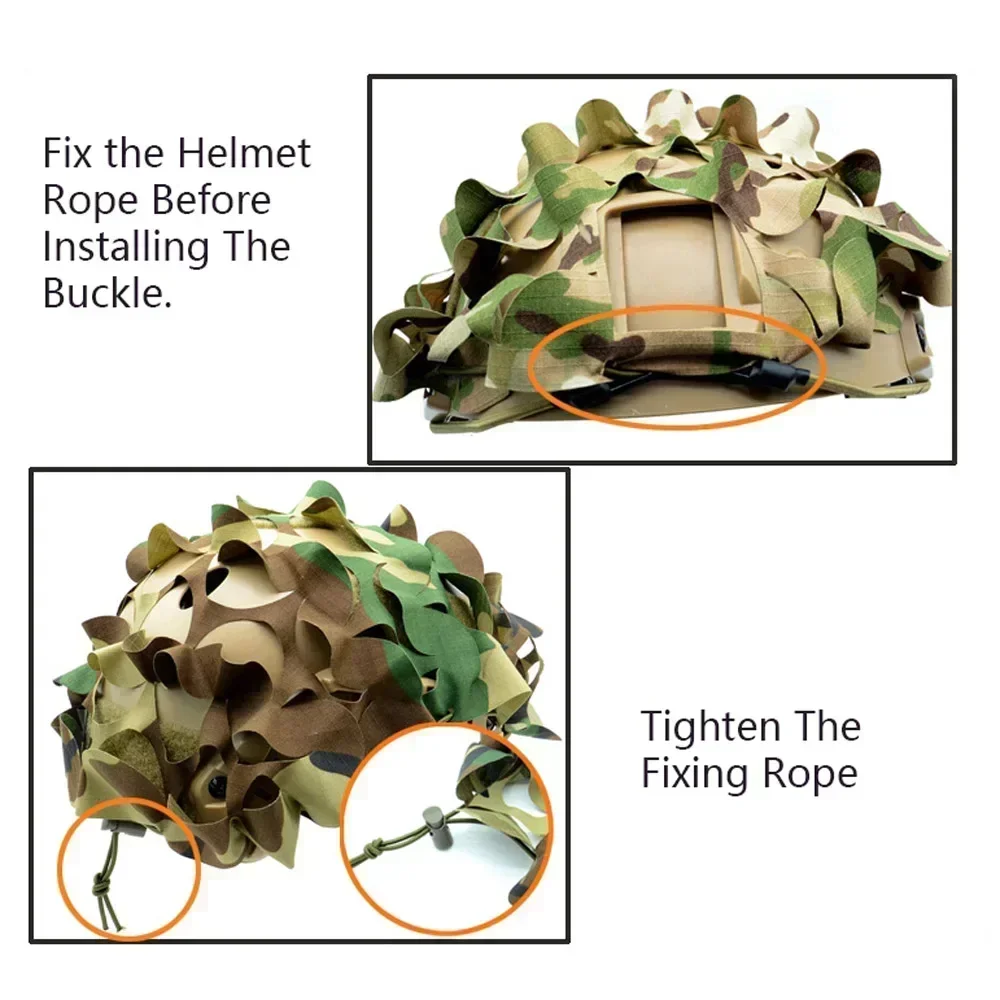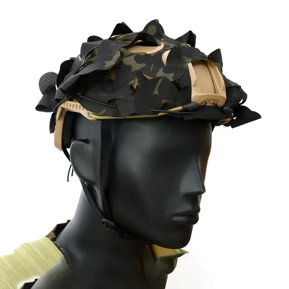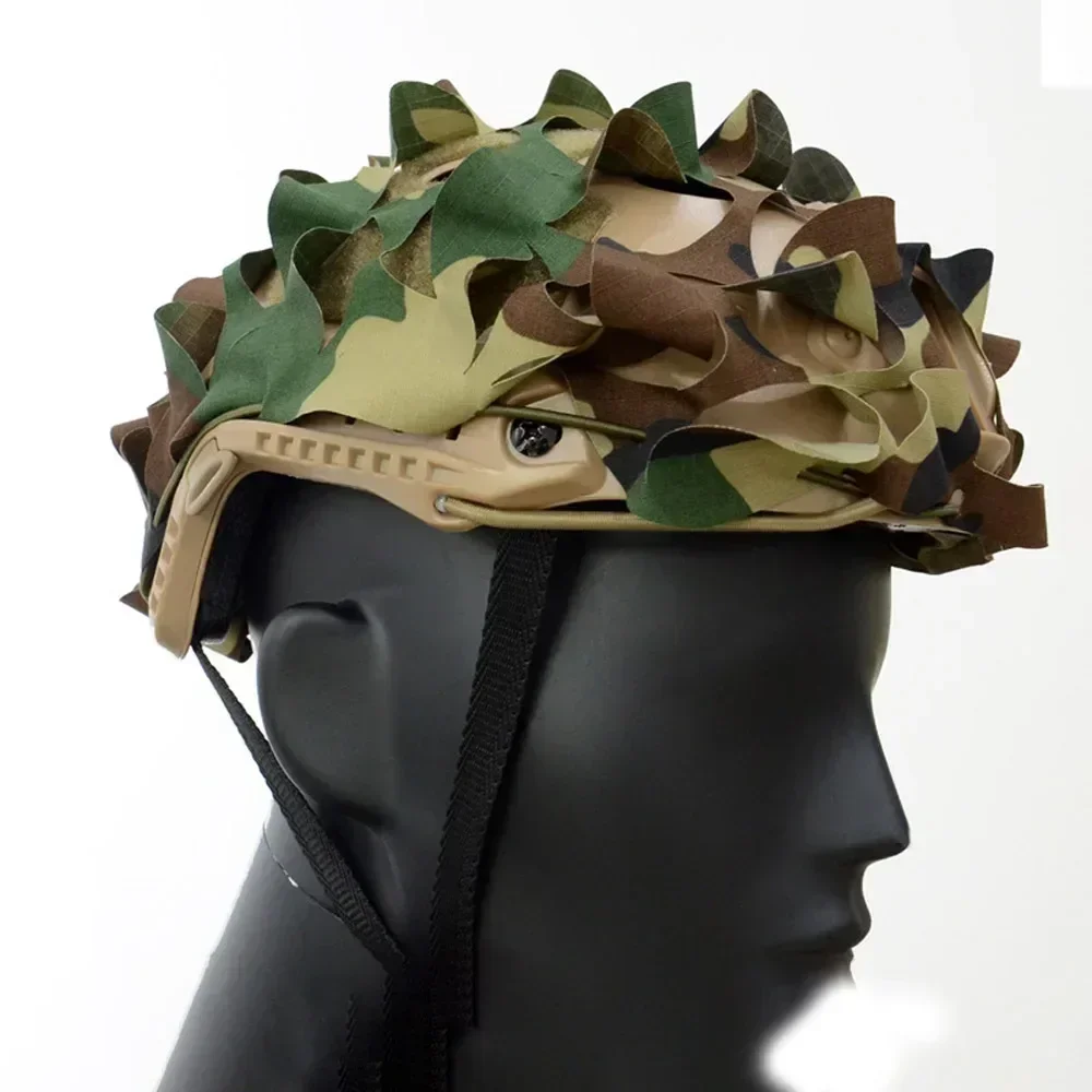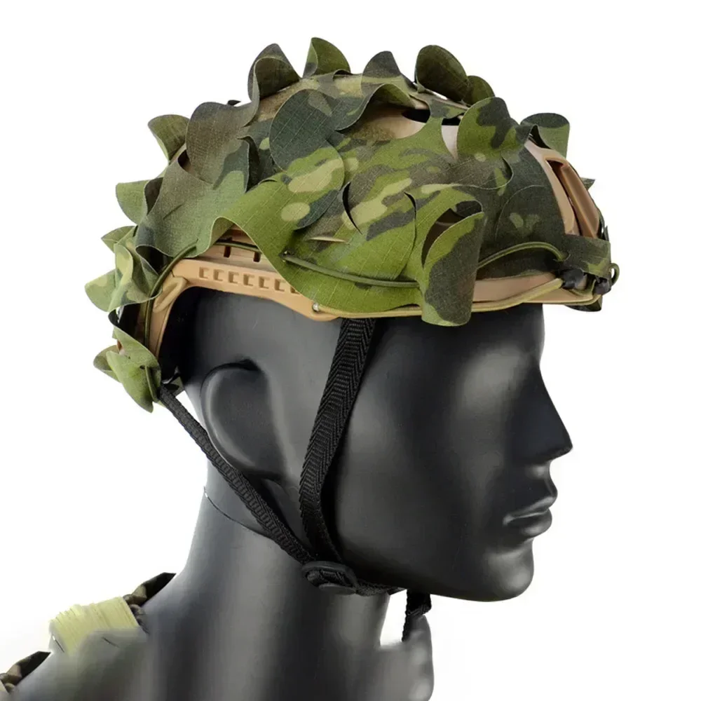 Características: 1.La funda del casco está cortada con láser 3D y formada en una sola pieza.Confeccionado en tejido de poliéster y algodón, transpirable, cómodo y más resistente al desgaste. 2.El diseño biónico le permite acercarse a la jungla exterior e integrarse en el entorno natural; se puede ocultar rápidamente. 3. Montaje sencillo: pase la banda elástica de la funda del casco a través del casco, engánchela al casco para fijarla y apriétela según sus preferencias.
