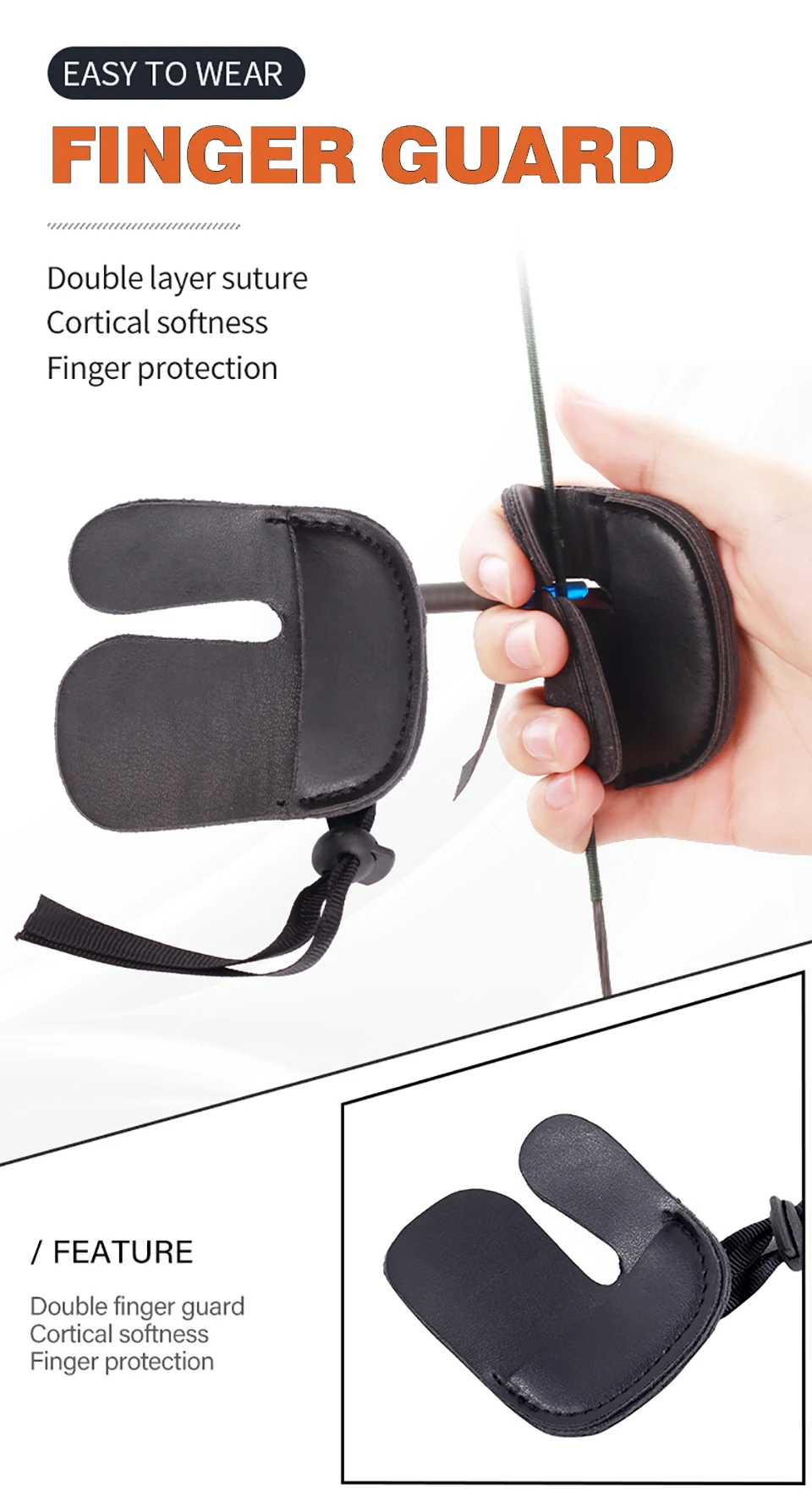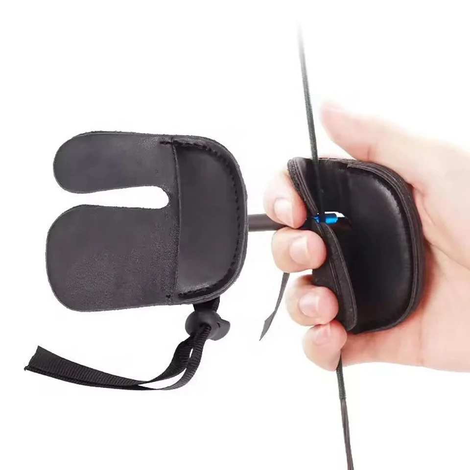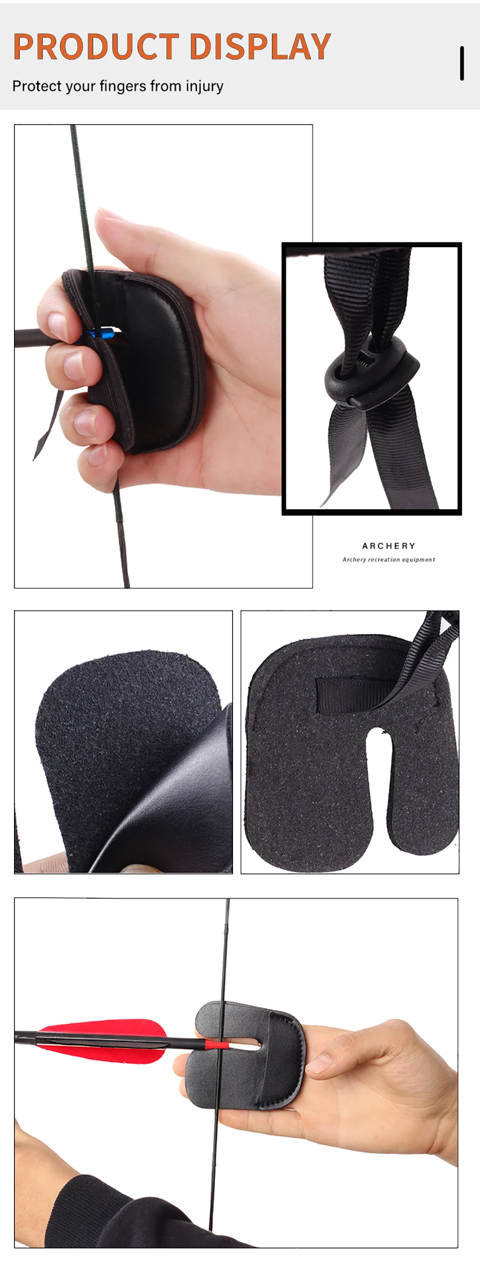 Accesorios de arco recurvo, Protector de dedo de tiro con arco, protector de dedo, cuero ajustable, práctica de caza, tiro con arco, flecha