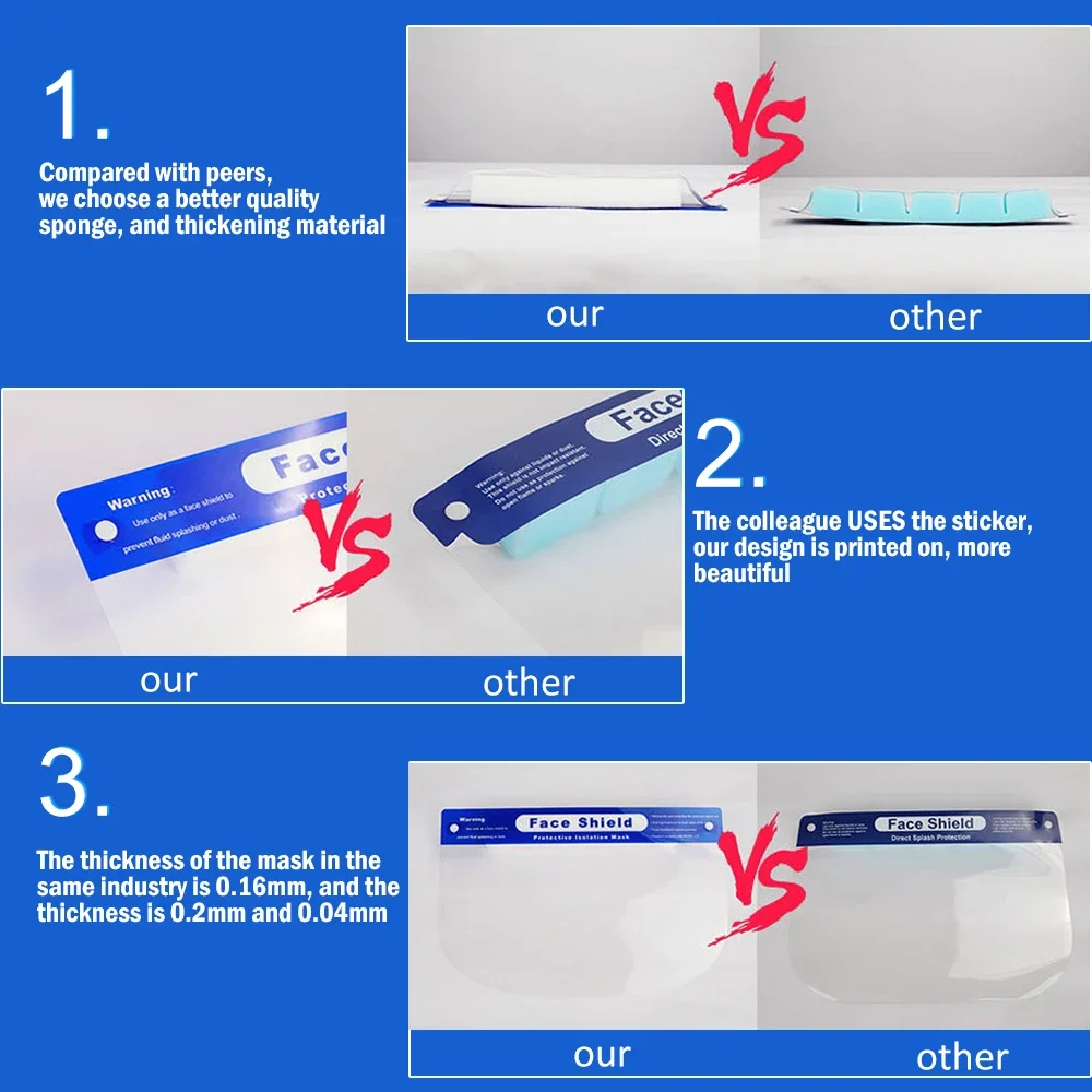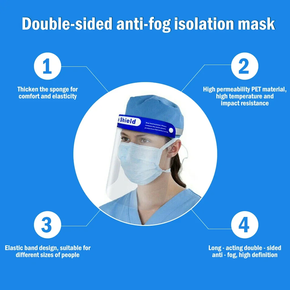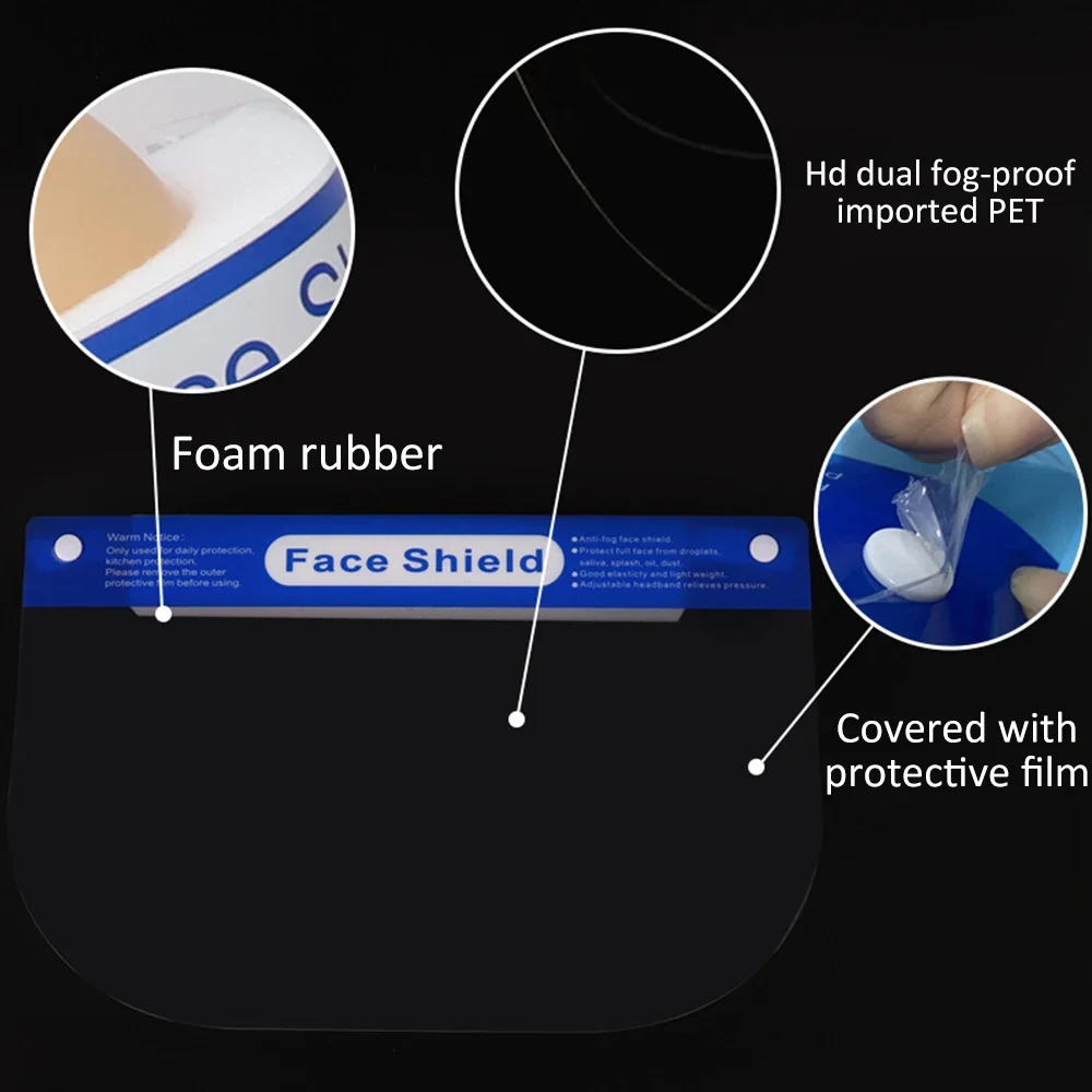 -El protector facial de plástico tiene una tira de espuma y la banda elástica se puede ajustar fácilmente según los hábitos, y está firmemente fijada y cómoda de usar.