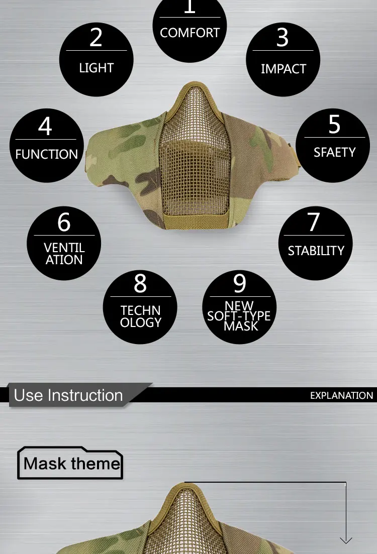 Protector facial táctico al aire libre deporte Cs protector facial de malla de acero transpirable tiro al aire libre caza Paintball