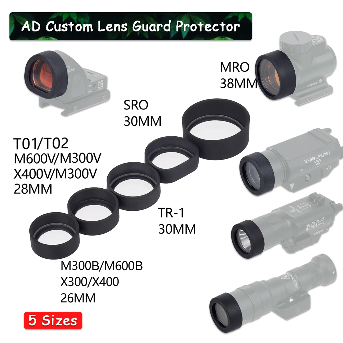 Protector de lente de goma personalizado AD táctico SF M300 M600 X300 X400 arma linterna SR MR T01/02 Protector de cubierta de mira de punto rojo