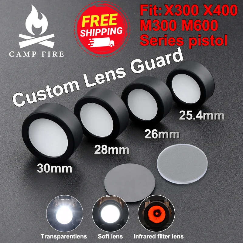 Protector táctico airsoft M300 M600 X300 X400, luz de caza, cubierta para linterna LED, protector de lente personalizado, 25,4mm, 26mm, 28mm y 30mm