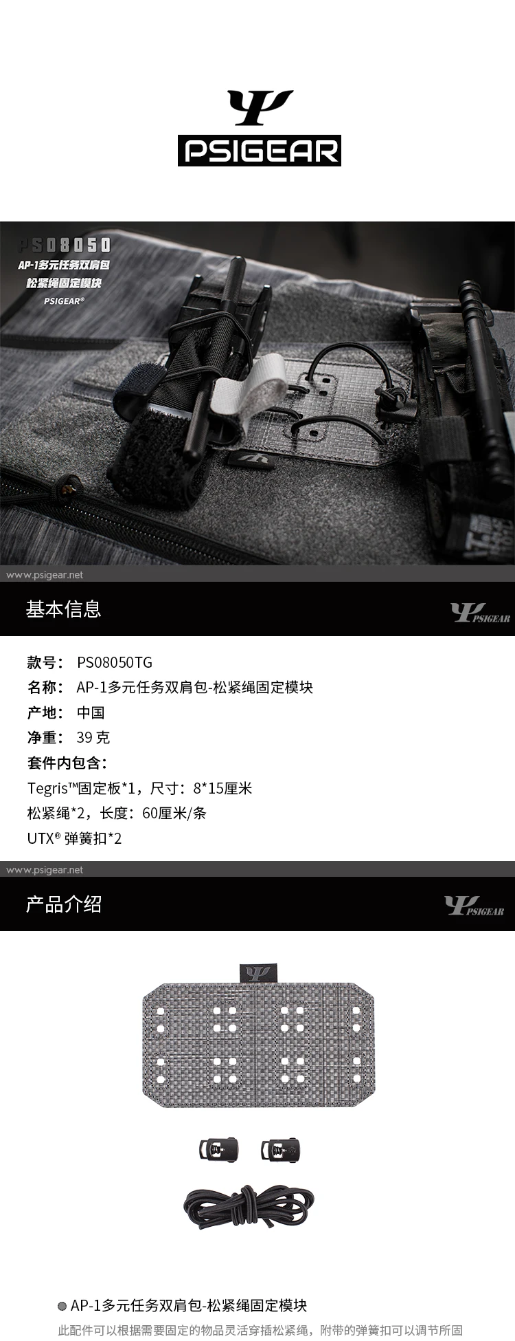 PSI AP-1 mochila multitarea, cuerda elástica, módulo fijo PS08050TG