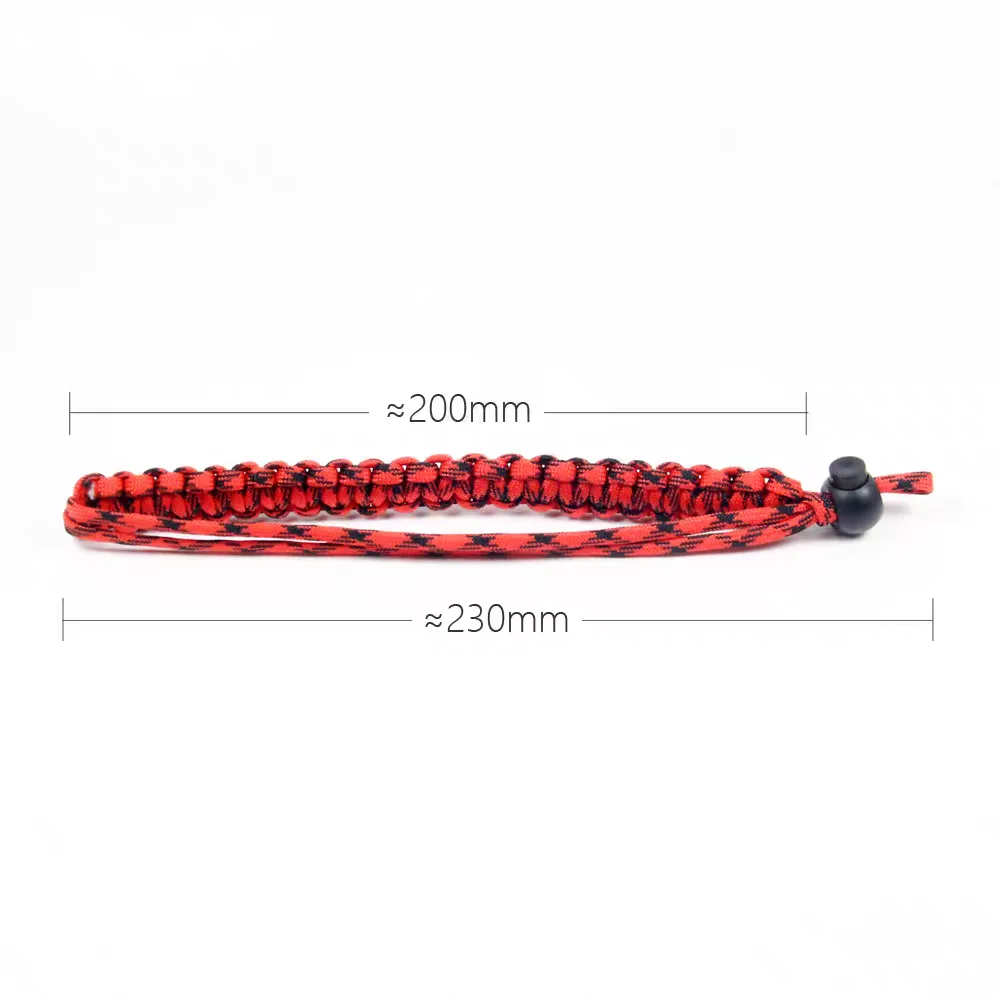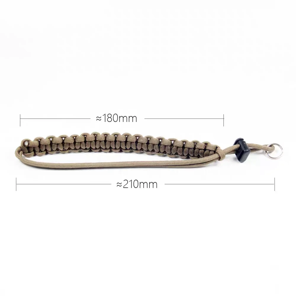 Esta pulsera está hecha de cordón de paracaídas de 7 núcleos y está tejida a mano.Es resistente y duradero.La pulsera tiene una amplia gama de usos.Se puede vincular a cámaras, DSLR, cámaras sin espejo, linternas, botellas de agua, llaves, herramientas, teléfonos móviles, herramientas EDC, etc.No sólo evita que se resbale y se pierda, sino que también luce elegante y con estilo.Diámetro de la cuerda: 4 mm.El diámetro del orificio debe ser superior a 5 mm para permitir su paso.