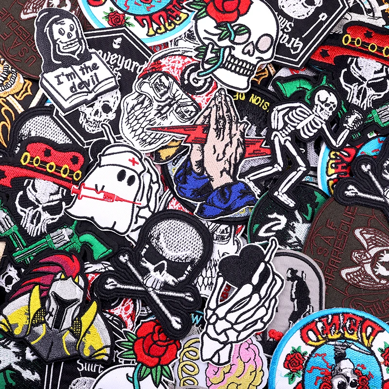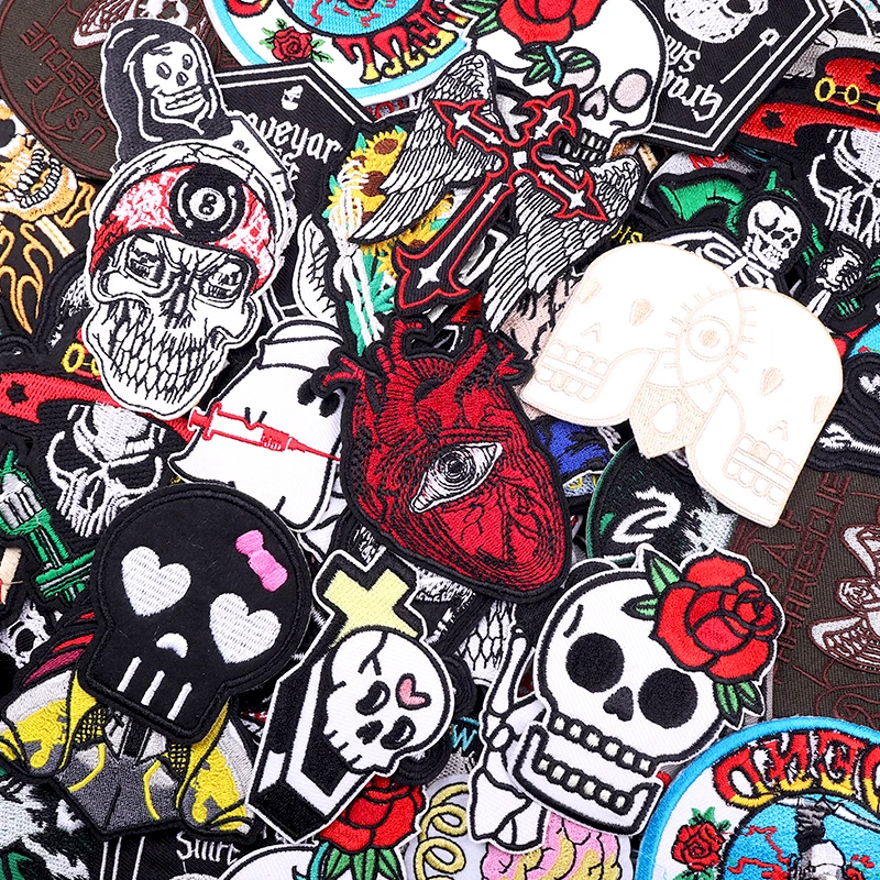 Punk Skull Random 10/20/30/50/100/Pcs/Lot Mixed Embroidery Patch Sewing Fusible Badges Iron On Patches For Clothing Stickers