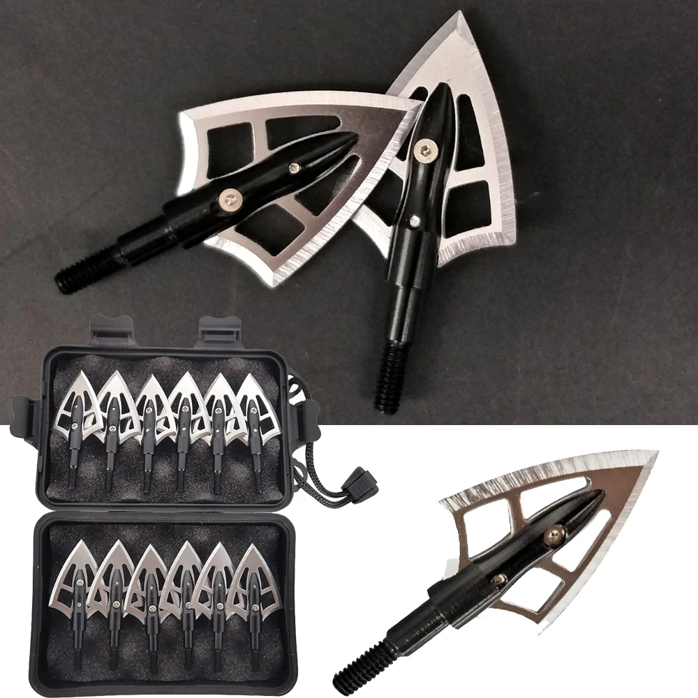 Punta de flecha de 100 granos, punta de flecha para caza, tiro con arco al aire libre, entrenamiento, Camping, puntas anchas, punta de flecha, 6/12 Uds.