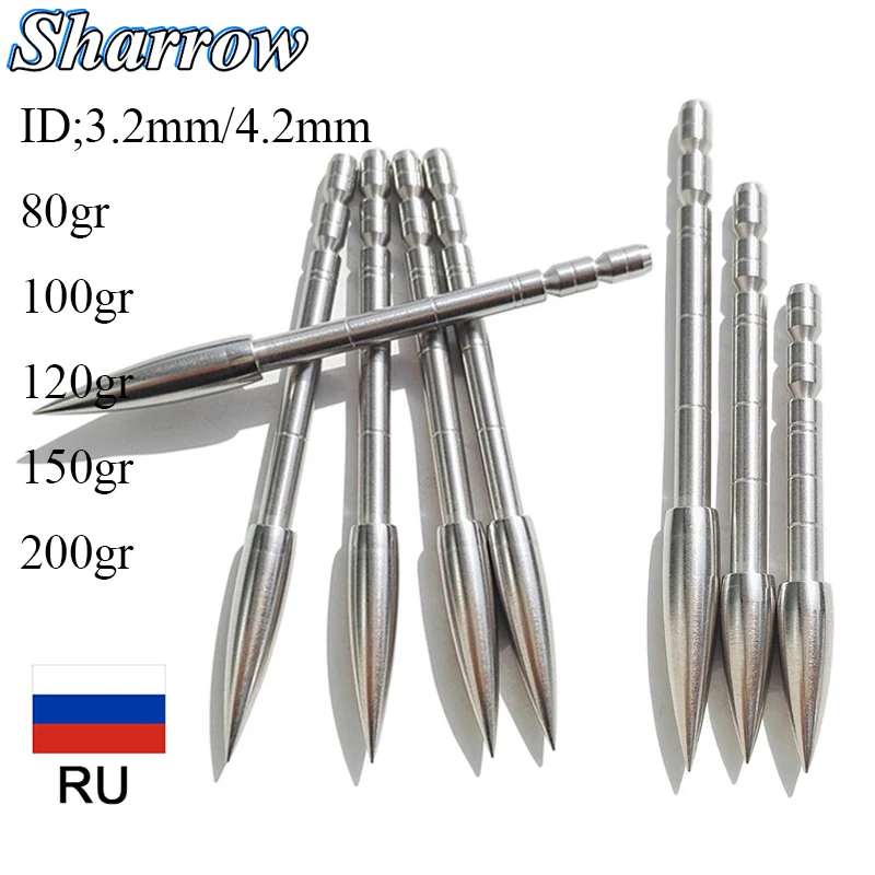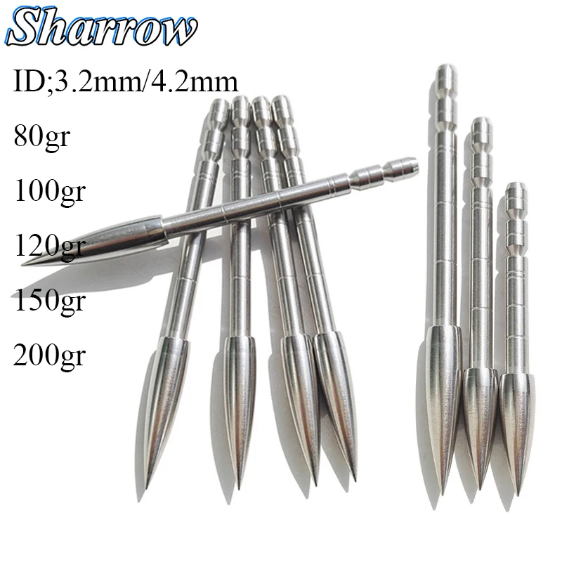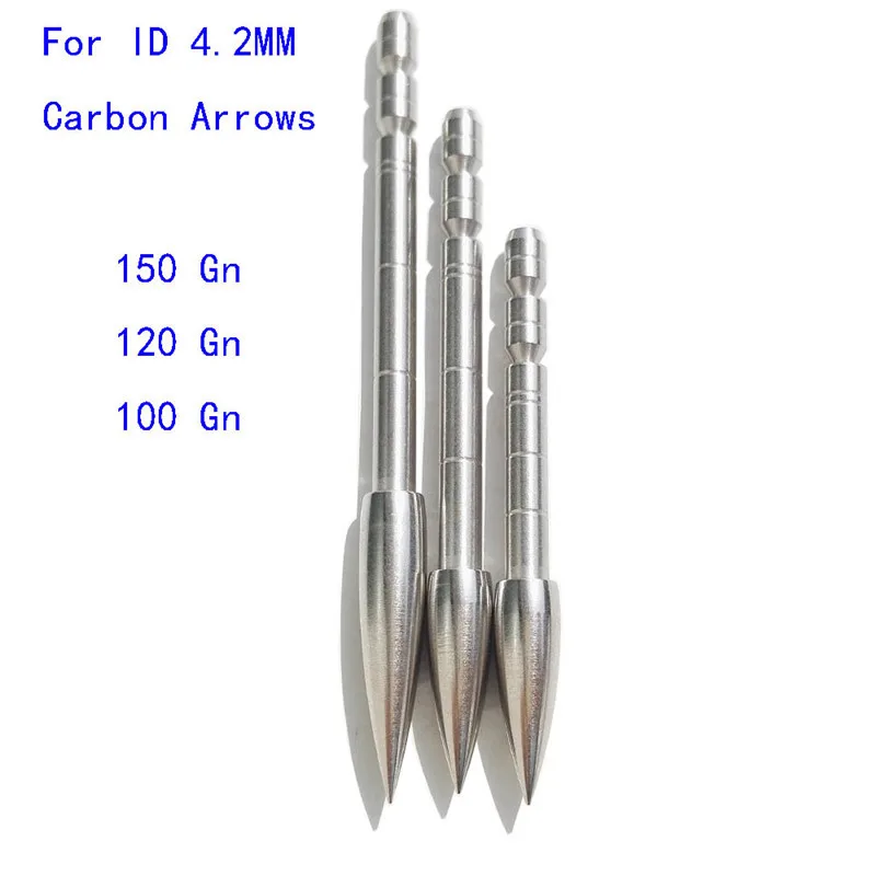 Punta de flecha de objetivo de tiro con arco ID3.2/4,2mm Puntas de campo de flecha de punta 80/100/120/150/200 grano de acero inoxidable para eje de flecha de carbono