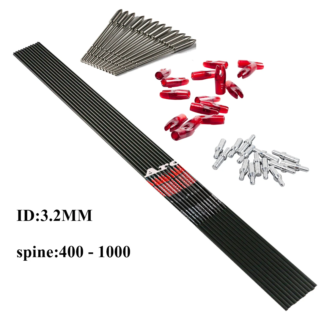 12 Linkboy tiro con arco flechas de carbono eje ID3.2mm puntas de flecha 120gr flecha Nock para caza con arco recurvo