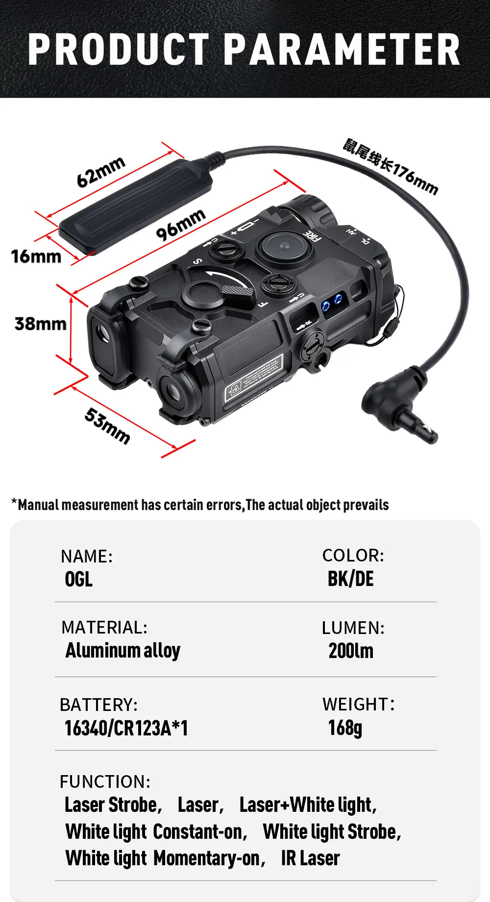 Puntero láser Eotec OGL totalmente de Metal, punto rojo, azul, verde, IR, equipo táctico de caza, accesorio, linterna de arma, antorcha LED blanca