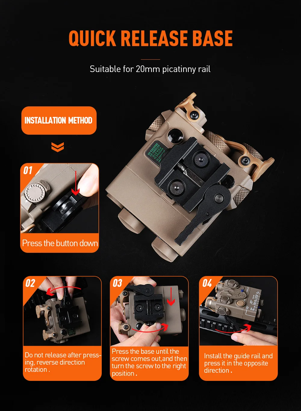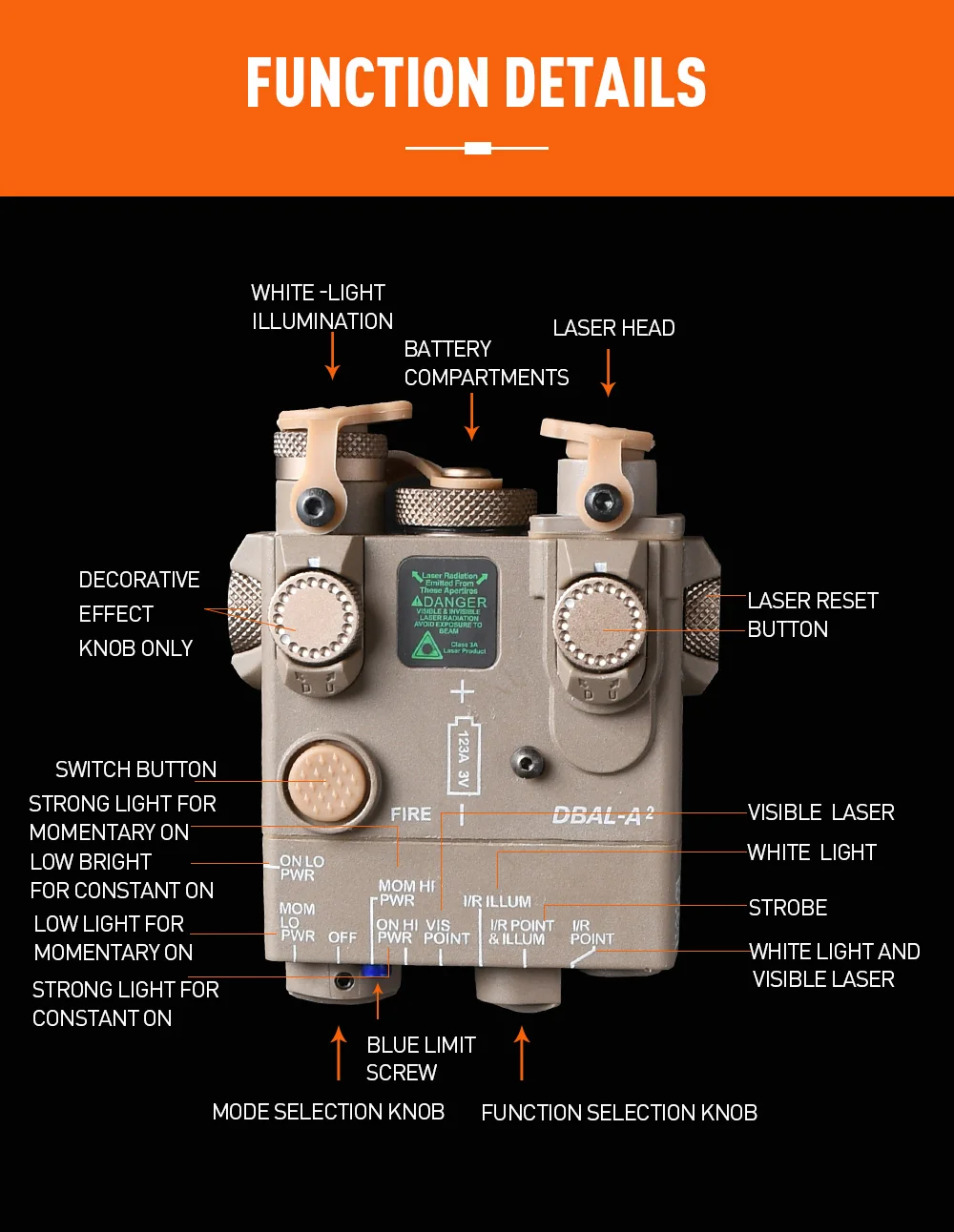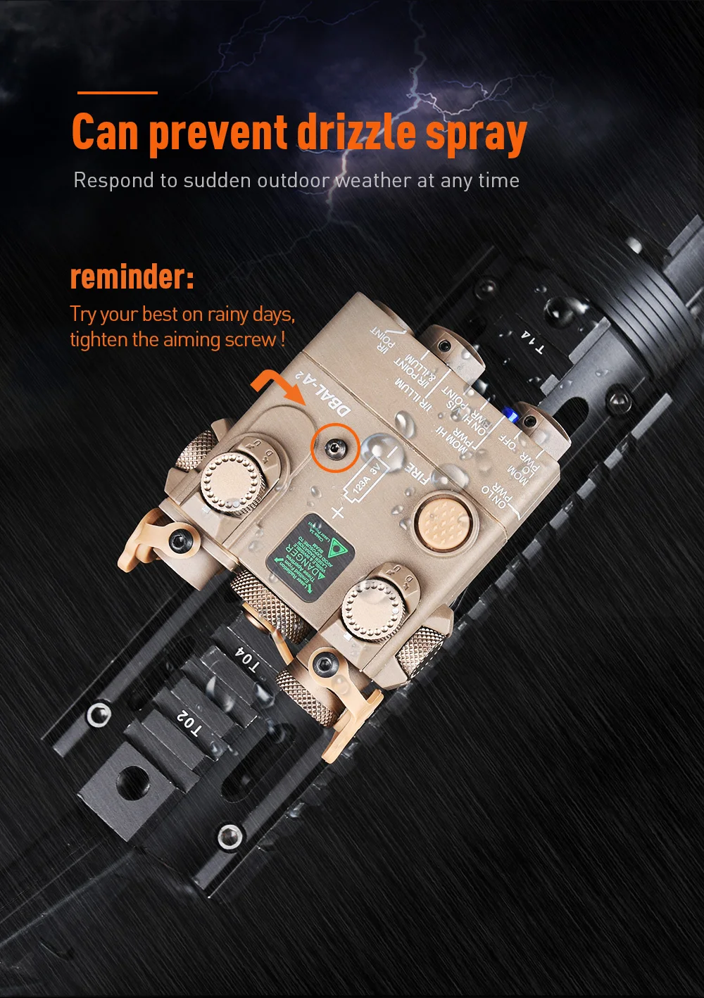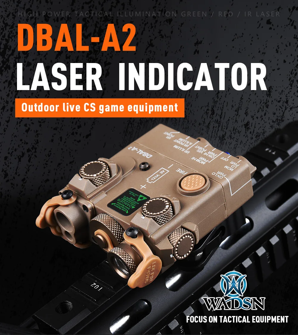 Puntero láser táctico DBAL A2, mira de punto rojo, azul y verde, No IR, táctico, estroboscópico, luz de arma de caza, abeto, carril de 20mm, Wiht Pres
