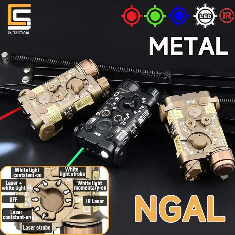 Puntero Láser Táctico NGAL de Metal - Visor IR con Puntos Rojo/Verde/Azul - Lámpara NGAL LED Blanca con Estrobo - Linterna Táctica para AR15 - Airsoft