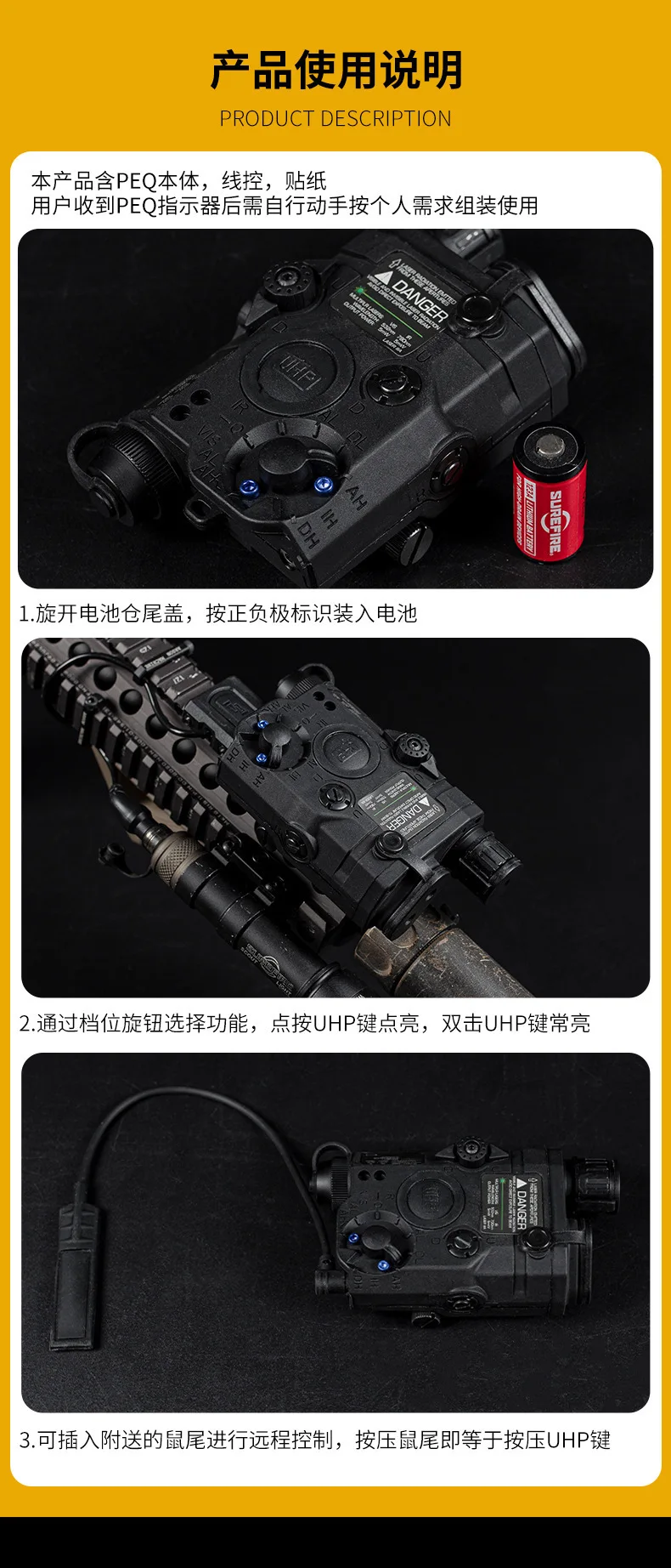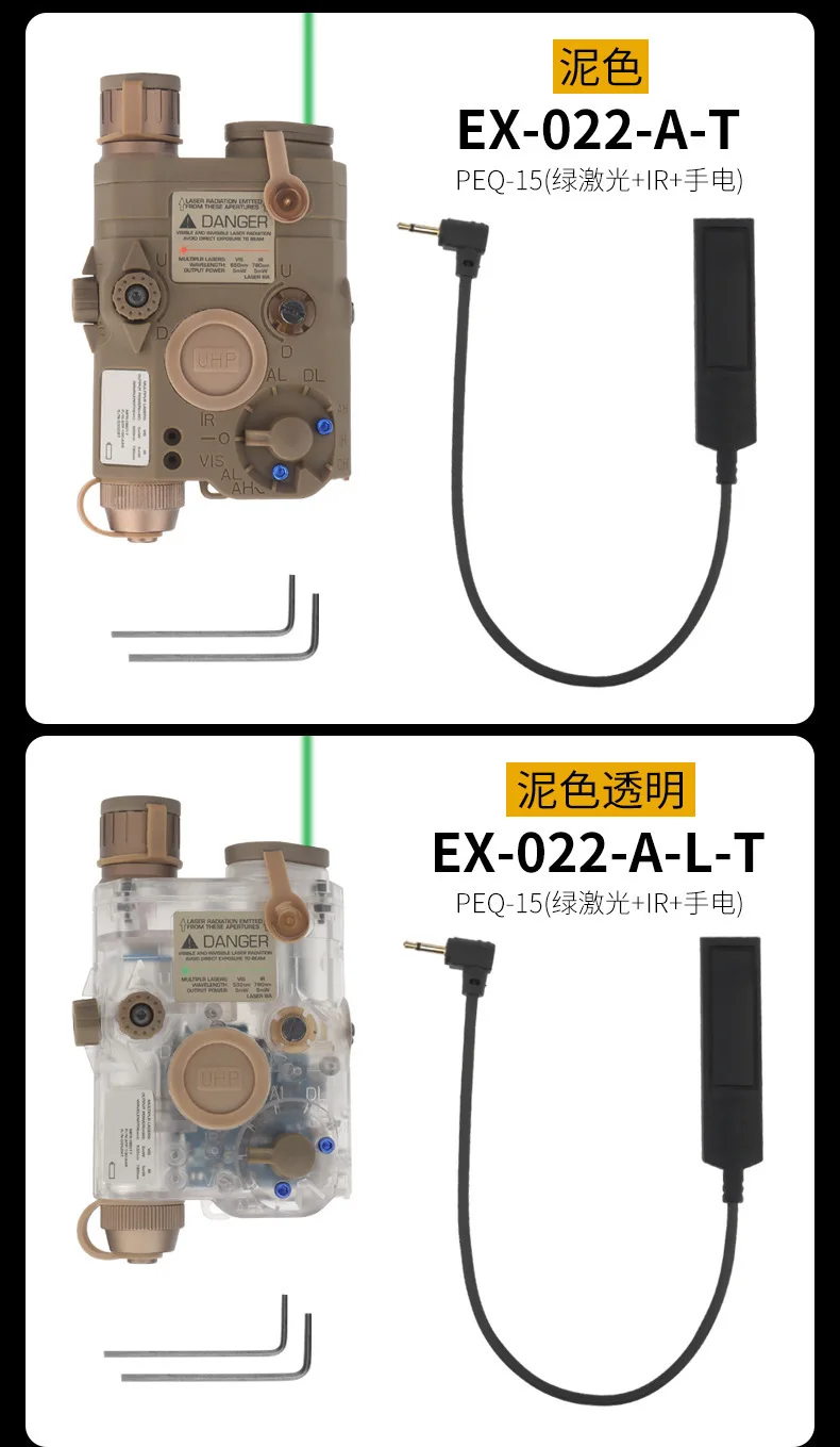 Puntero láser verde táctico PEQ-15 (láser verde + infrarrojo IR no luminoso + linterna)