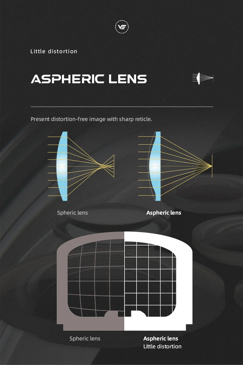 · La lente asférica minimiza la aberración y no distorsión de la imagen.