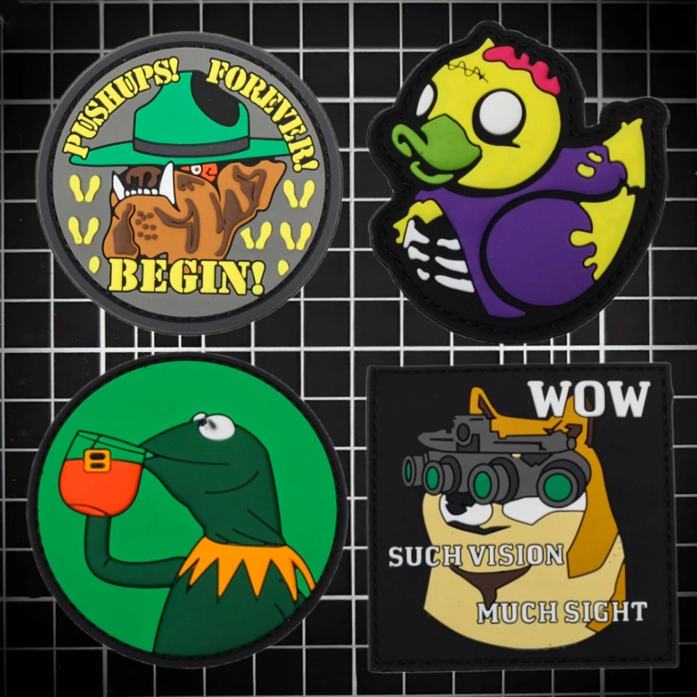 PUSHUPS FOREVER BEGIN Perro táctico Visión nocturna Parche de PVC Esqueleto Pato Insignia de moral Mochila Pegatina Parches de gancho y bucle