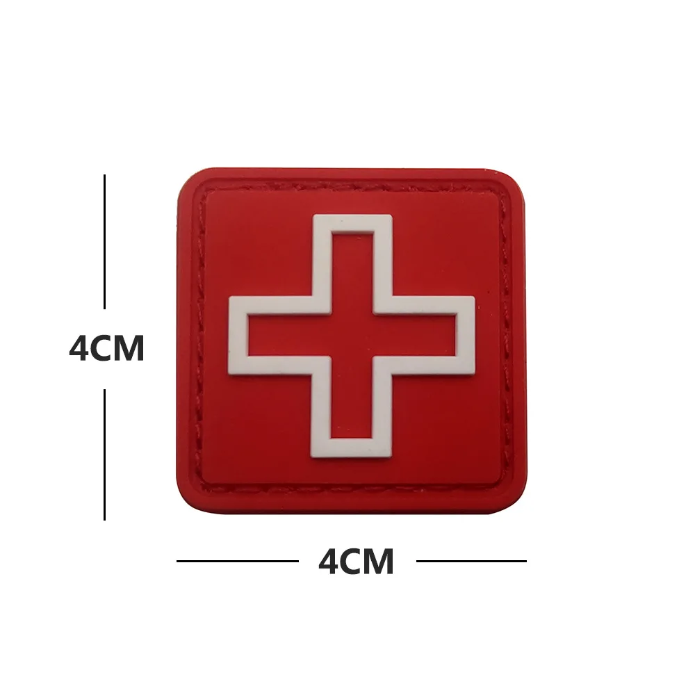 Parches PVCTactical en la ropa 3D, rojo, blanco, negro, primeros auxilios médicos, Parche de gancho y bucle cruzado, insignia de moral militar para mochila
