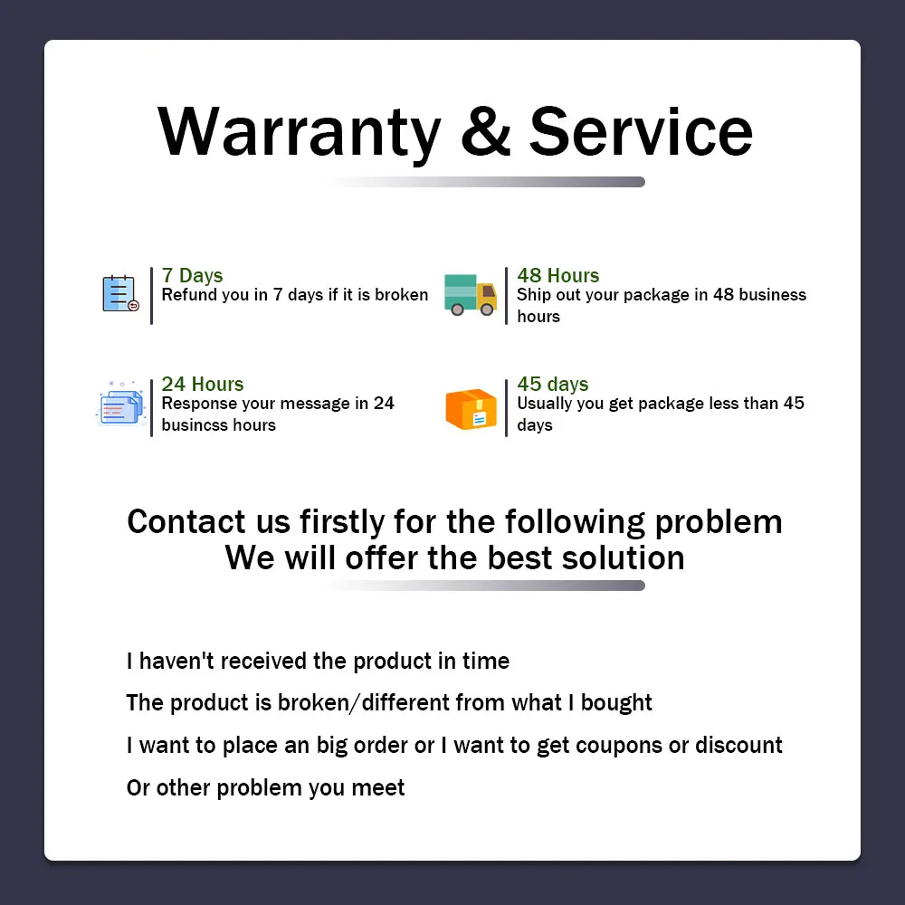 Si recibe un paquete y tiene alguna pregunta u otro problema con el artículo, comuníquese con nosotros por correo electrónico de manera oportuna y le brindaremos una solución satisfactoria. No envíe solicitudes de devolución ni deje críticas negativas a voluntad.
