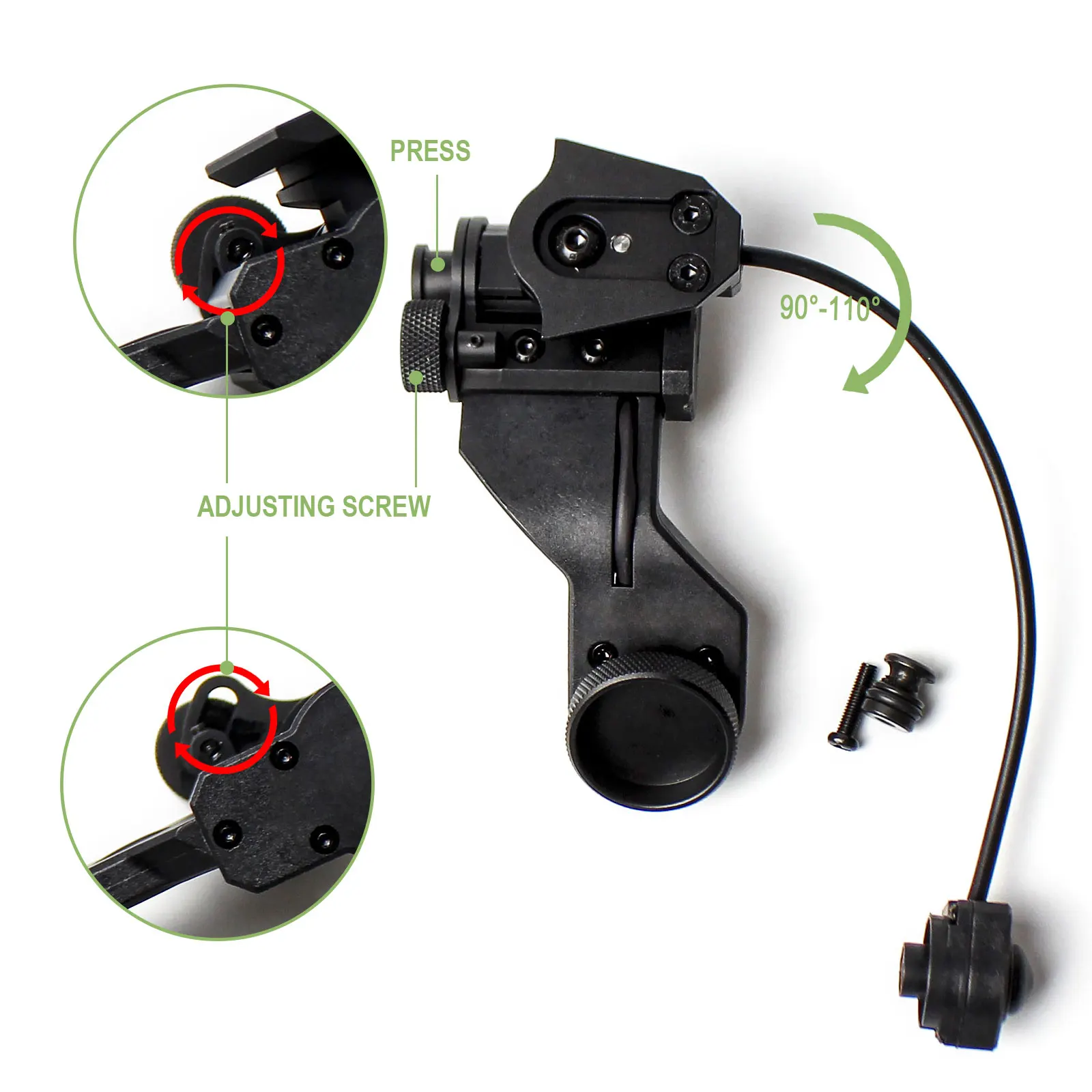El AN/PVS-14 J-Arm Auto ON/OFF con cola de milano proporciona una conexión duradera para montar un AN/PVS-14 en un soporte de interfaz para casco.Se puede montar y desmontar fácilmente del AN/PVS-14 mediante un tornillo de mariposa y permite al operador seleccionar la altura y el ángulo para mayor comodidad.El AN/PVS-14 J-Arm Auto ON/OFF ofrece la capacidad de realizar ajustes finos para personalizar la posición del dispositivo para lograr la posición y el alivio adecuados de los ojos.
