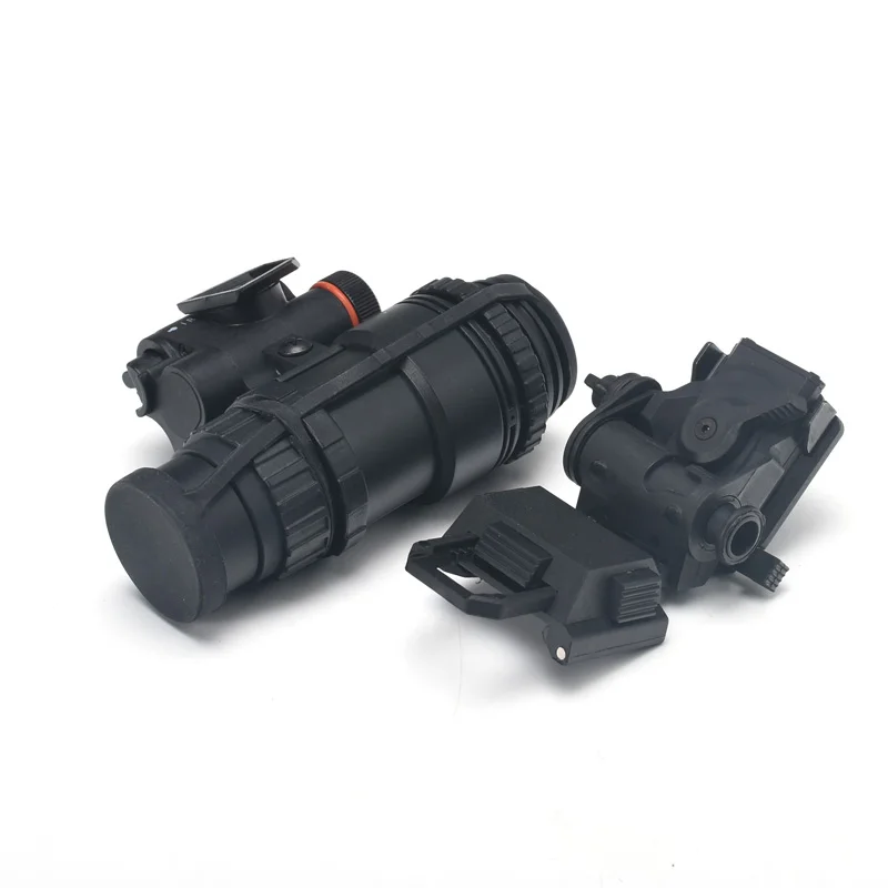 Fabricante: FMA Material: metal de aluminio + PA66 Peso: 280 gramos Función: modelo Ficticio NVG PVS-18, Telescopio 1:1 de metal + plástico ABS Nylon sin función