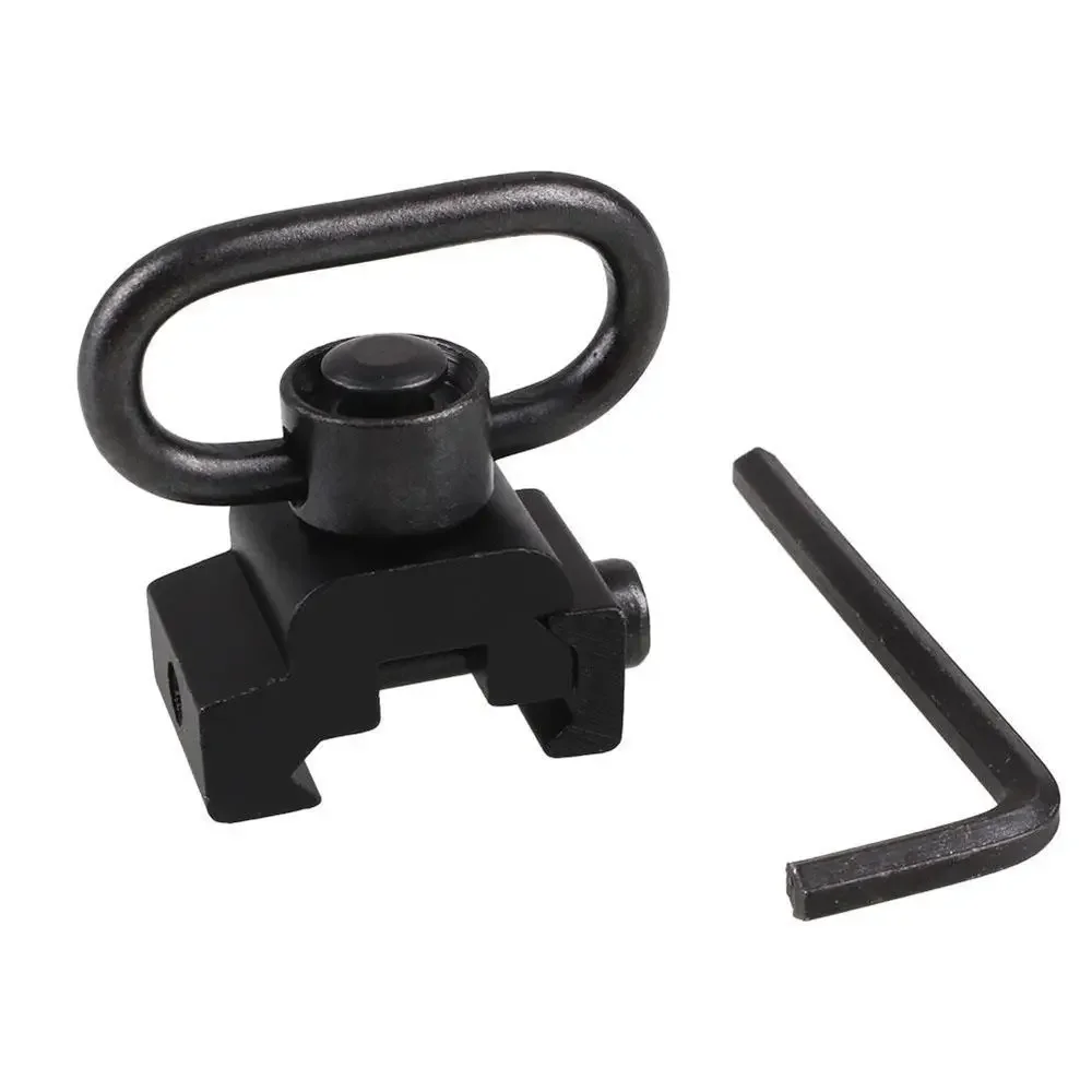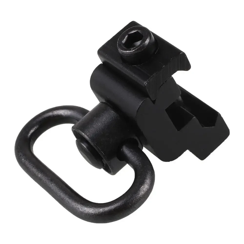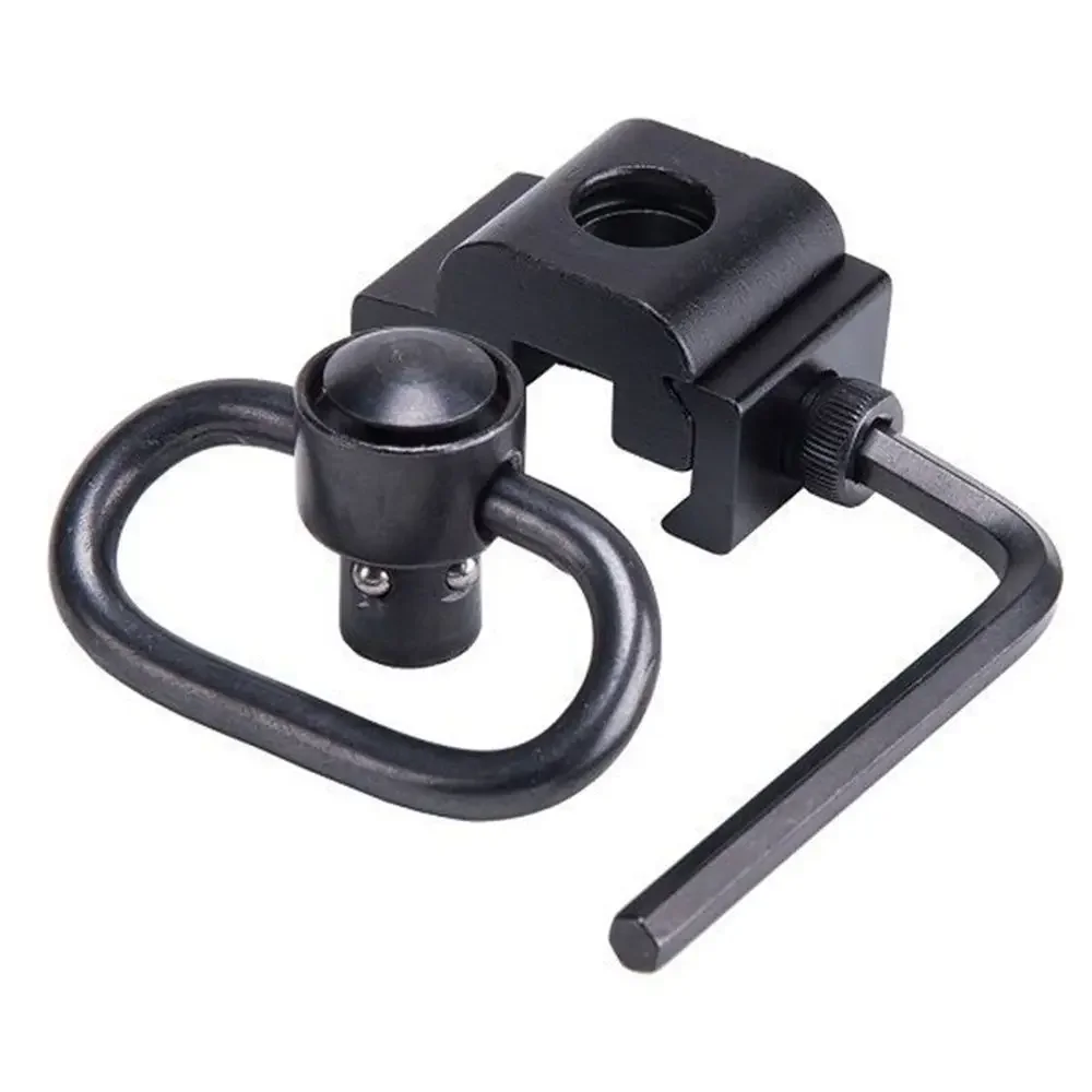 Specification: Material: Steel Color: Black Weight: 55g(Approx) Size: As show Feature: - Made of sturdy, high strength steel to provide you with durable and safe performance - The sling swivel can be rotated 90 degrees and position stop controlled by releasing the QD button Anti-rotation design prevents rotation - Sturdy and lightweight construction - Supplied with an Allen key for easy installation Note: 1. Due to the different effect of the monitor and light, The actual color of the item may be slightly different from the color shown in the photos. 2. Please allow 1-5mm measuring deviation due to manual measurement. Package Included: 1 x Sling Swivel Rail Mount 1 x QD Fixing Knob 1 x Allen Wrench