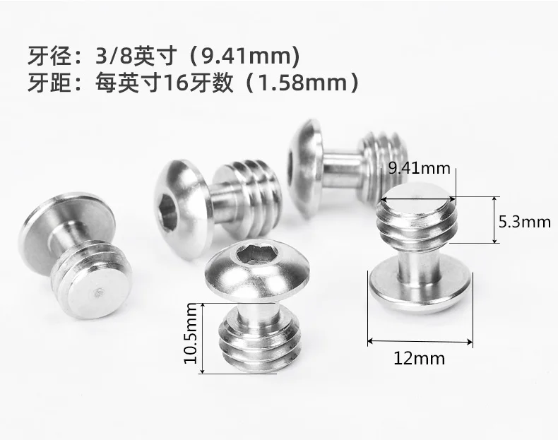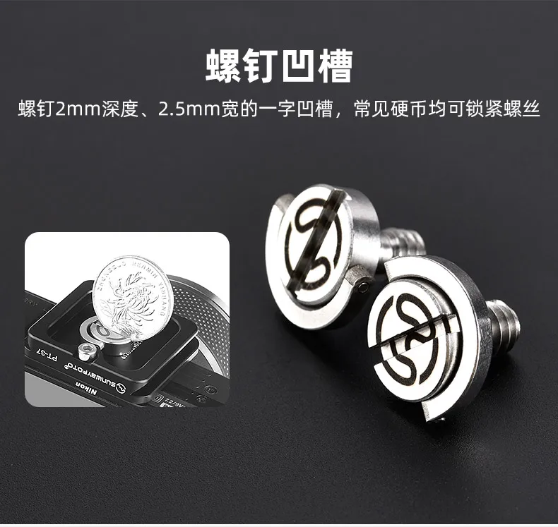 QRS-01 Tornillos de placa de montaje rápido Tornillos de eje central de transferencia de cabeza de trípode Tornillos de cámara de 1/4 vueltas 3/8