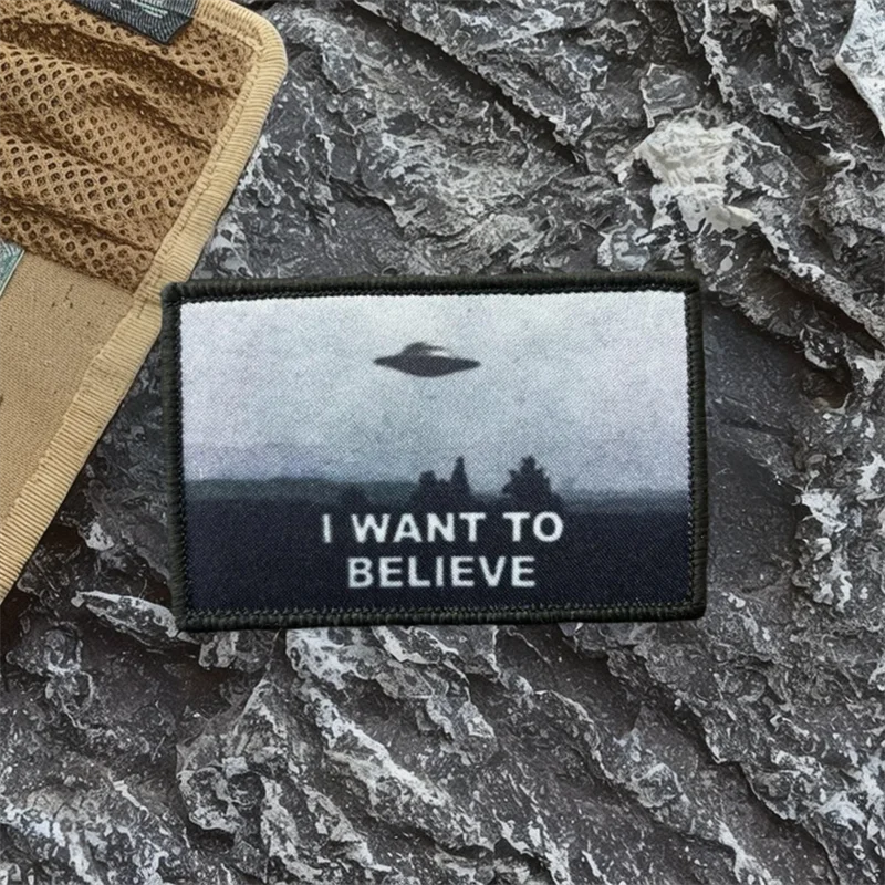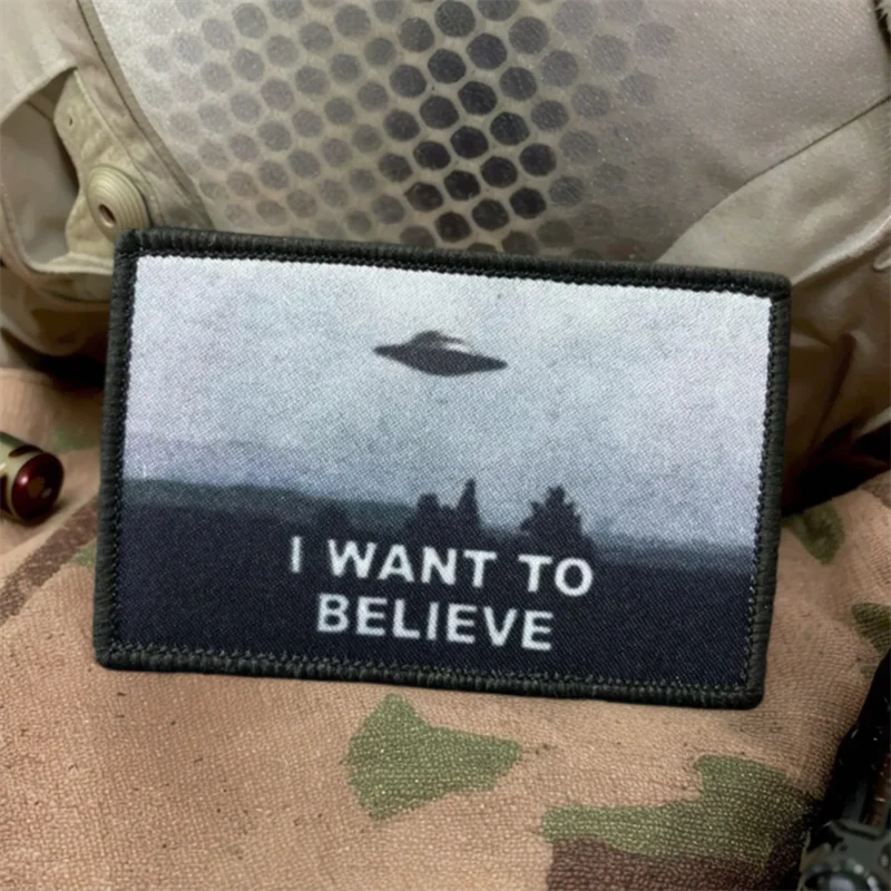 Quiero creer parche táctico gancho y bucle área militar OVNI dirigible moral insignia brazalete tela mochila pegatina