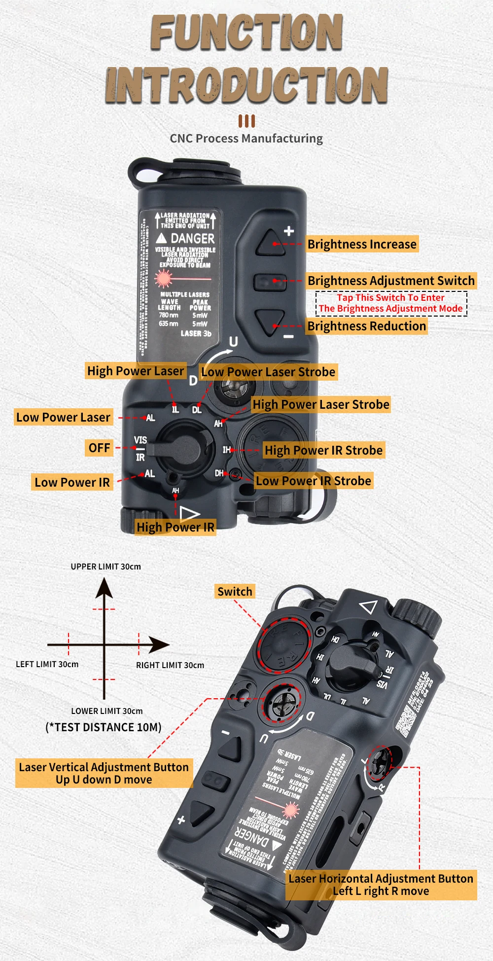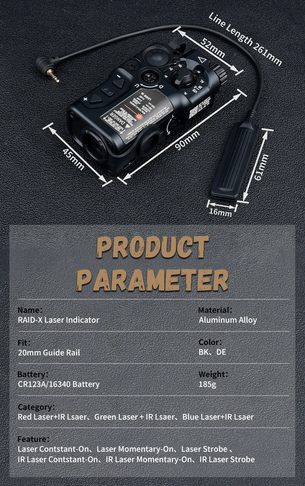 CARACTERÍSTICAS: Láser rojo verde azul/láser IR