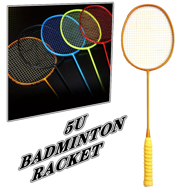 Raqueta de pelota de plumas superligera 4u 5u, raqueta individual + pegatina protectora, Material de fibra de carbono, raqueta de entrenamiento de alta libra para adultos
