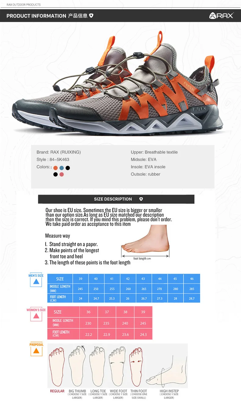 Rax zapatos acuáticos para hombre, zapatos de pesca transpirables de secado rápido para mujer, zapatos de agua antideslizantes para trekking, zapatillas deportivas para senderismo