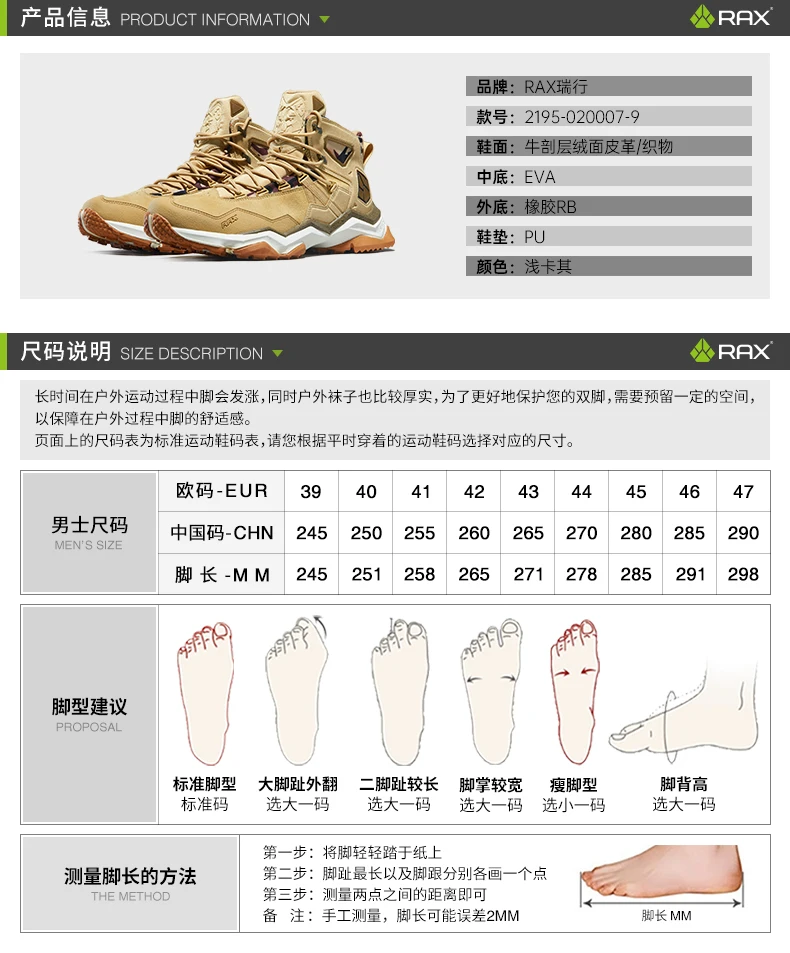 Rax zapatos de senderismo para hombre, botas de montaña impermeables para exteriores, zapatos antideslizantes para senderismo, zapatos ligeros para caminar y cazar