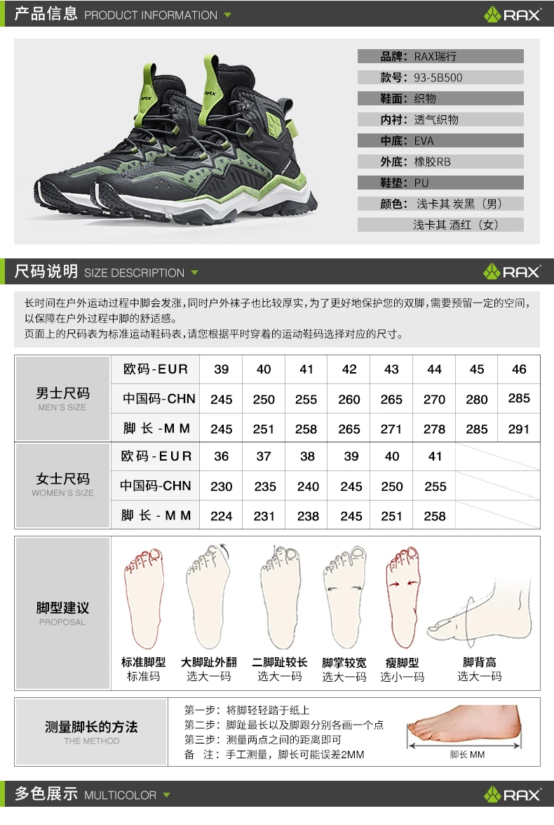 RAX-zapatos de senderismo para hombre, zapatillas impermeables para exteriores, zapatos de Trekking para mujer, botas de caza para acampar y escalar, transpirables
