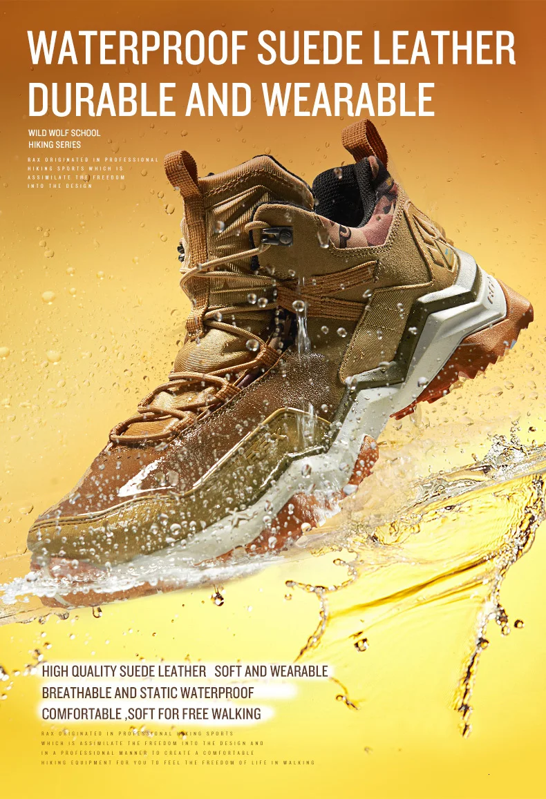 RAX-zapatos de senderismo impermeables de piel de vaca para hombre y mujer, botas de Trekking para escalar, zapatillas de montaña antideslizantes para exteriores, botines