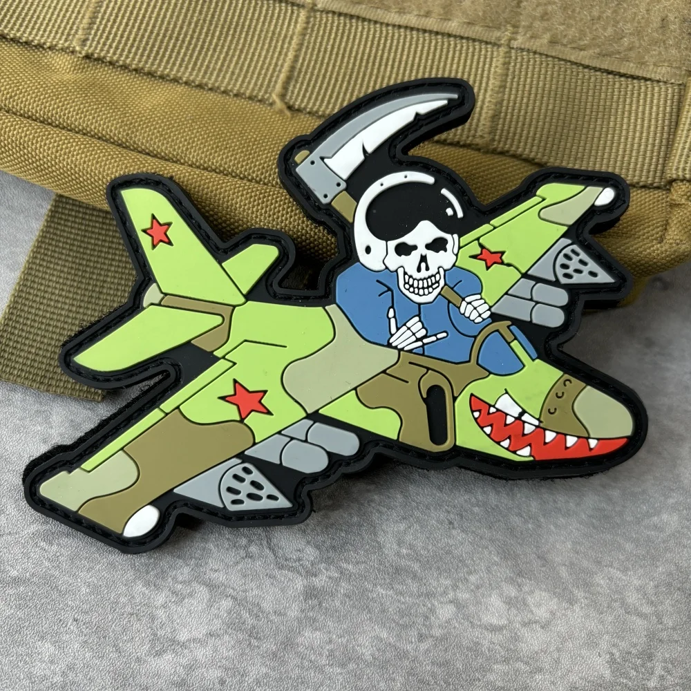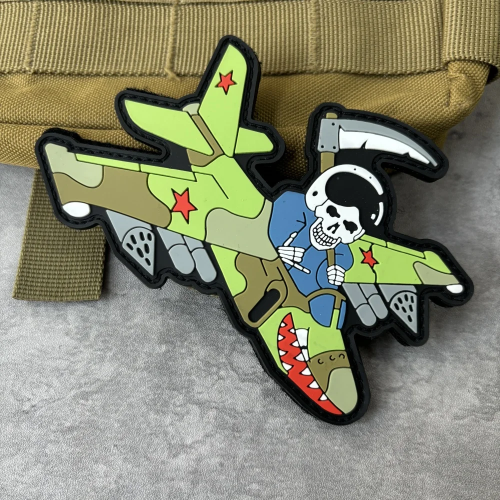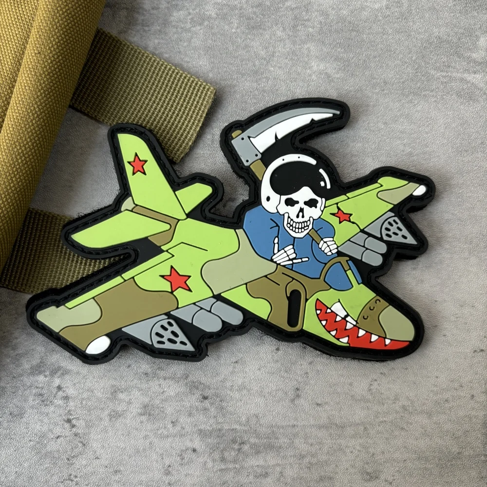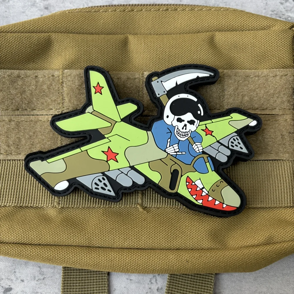 "Reaper o Su-25." Parche táctico de PVC, emblema de gancho y bucle de esqueleto, insignia de moral militar, brazalete, ropa de Chevron, pegatinas para mochila