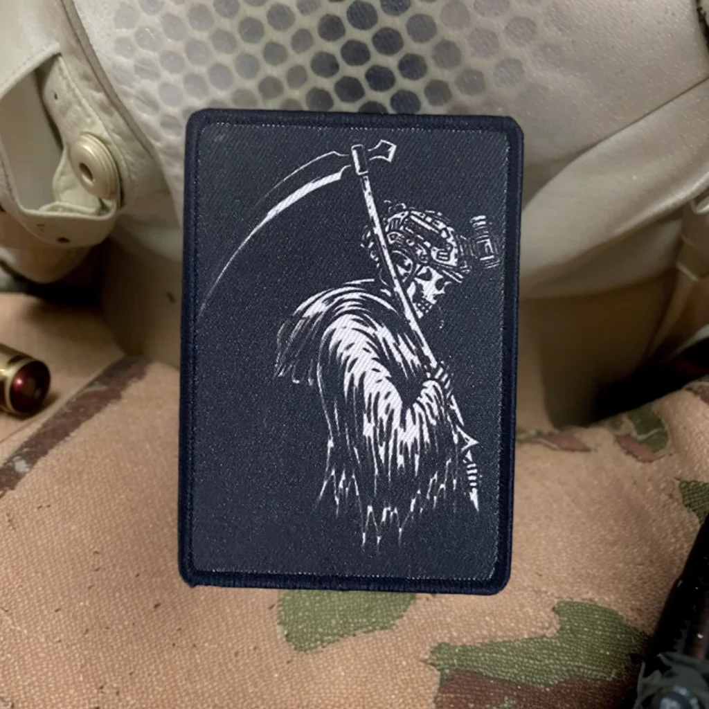 Reaper-insignia de moral de calavera, parche táctico de guerrero de calavera, parches impresos de guadaña de muerte, gancho y bucle, mochila militar decorativa