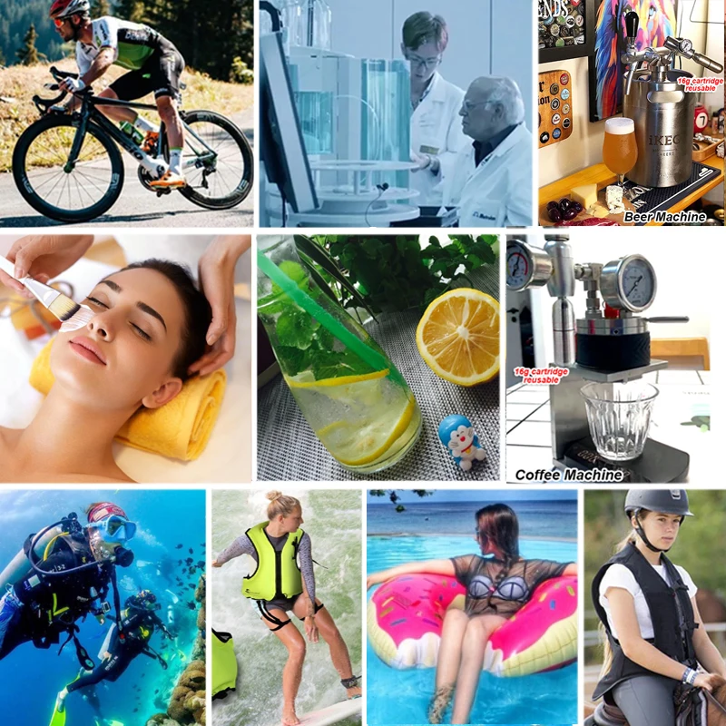 - Rango útil: mantenimiento neumático/bolsillo de vida/gorro de airbag/traje de ciclismo/traje de baño/máquinas de cerveza/soda //café/bar/neumáticos/bolas/belleza/tuzador de ratones/pintura en aerosol/fuego/rescate, etc.