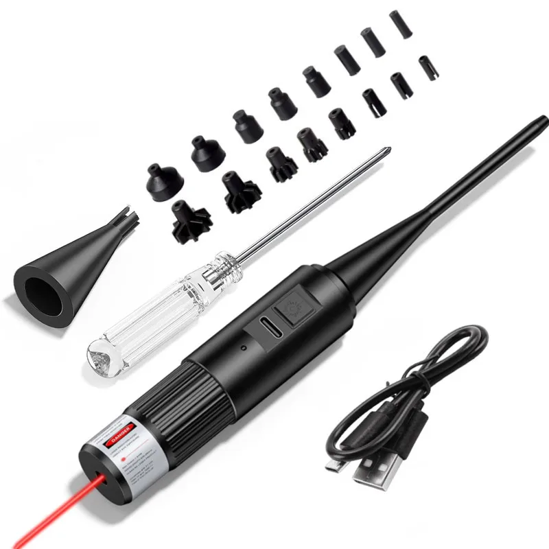Recargable USB de carga láser Bore Sight Rifle BoreSighter colimador 8 Kit adaptador interruptor de botón para calibre 0,177 a 0,54