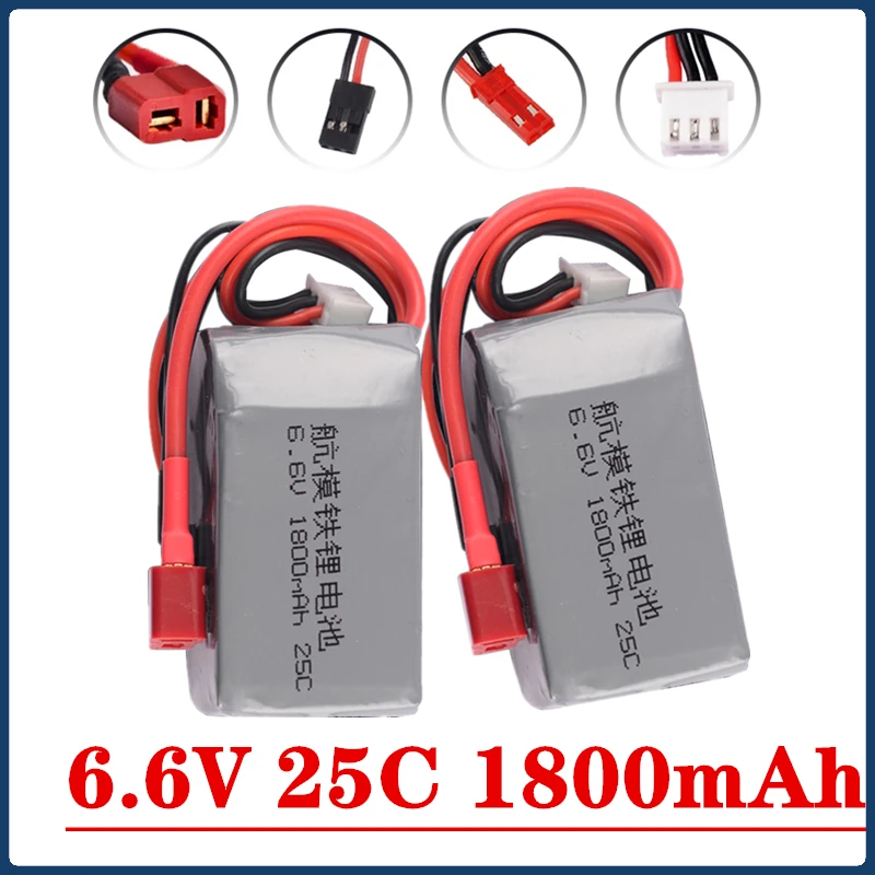 Receptor de Control remoto LiFePO4, paquete de batería RX con conector JST y enchufe Futaba para transmisor, 6,6 V, 1800mAh, 25C