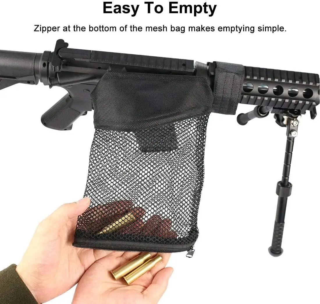 Diseño ajustable: Hay 4 configuraciones en el soporte del riel Pic del resorte y el ajuste de la retención es muy práctico, lo que le permite ajustar fácilmente la distancia del receptor de latón al puerto de expulsión. Perfil bajo y rápidamente desmontable: La pieza de montaje que va en el riel Picatinny es de perfil muy bajo y se ajusta fácilmente bajo el alcance. La desconexión rápida es fácil de usar y manipular. Construcción de calidad: el nailon grueso garantiza que no se derrita al ser expulsado. Hay una cremallera en la parte inferior de la bolsa para que pueda vaciarla sin quitar el receptor de su rifle. Apertura más grande: 5 "x 2,75" La apertura es bastante grande y no interfiere con la expulsión de la caja de latón gastada. Sostiene 100 rondas de latón. 223, puede contener una gran cantidad de carcasas antes de tener que vaciarlas. Ideal para recargar. Este cierre de latón Feyachi es lo suficientemente versátil como para permitir el montaje en casi cualquier rifle con un riel de imagen. Ideal para cualquier persona que reutilice latón o quiera mantener limpios los rangos al aire libre. Incluye dos soportes de riel para transferir fácil y rápidamente este receptor a otra arma de fuego.
