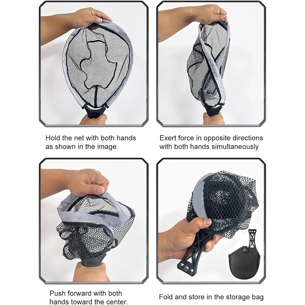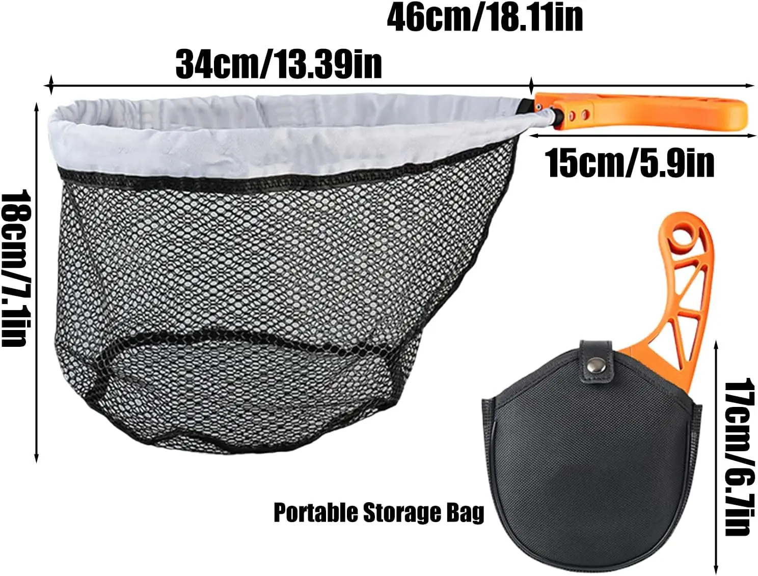 Material: mango de ABS, metal, red de goma.Longitud total: 46 cm/18,1 pulgadasLongitud del mango: 15 cm/5,9 pulgadasProfundidad neta: 18 cm/7,1 pulgadasLongitud de la bolsa de almacenamiento: 17 cm/6,7 pulgadasPeso neto de pesca: 188 g.Peso de la bolsa de almacenamiento: 47 gCaracterísticas: