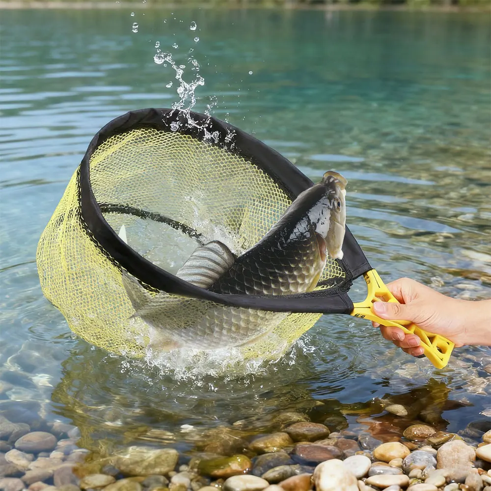 Material: anillo de malla metálica, mango de ABS, red recubierta de gomaTamaño de la malla: 6 mmTamaño desplegado: 46x29x20cmLongitud del mango: 14 cmTamaño de la bolsa de almacenamiento: 17x15 cmPeso neto de pesca: 160 gPeso de la bolsa de almacenamiento: 50 gCaracterísticas: