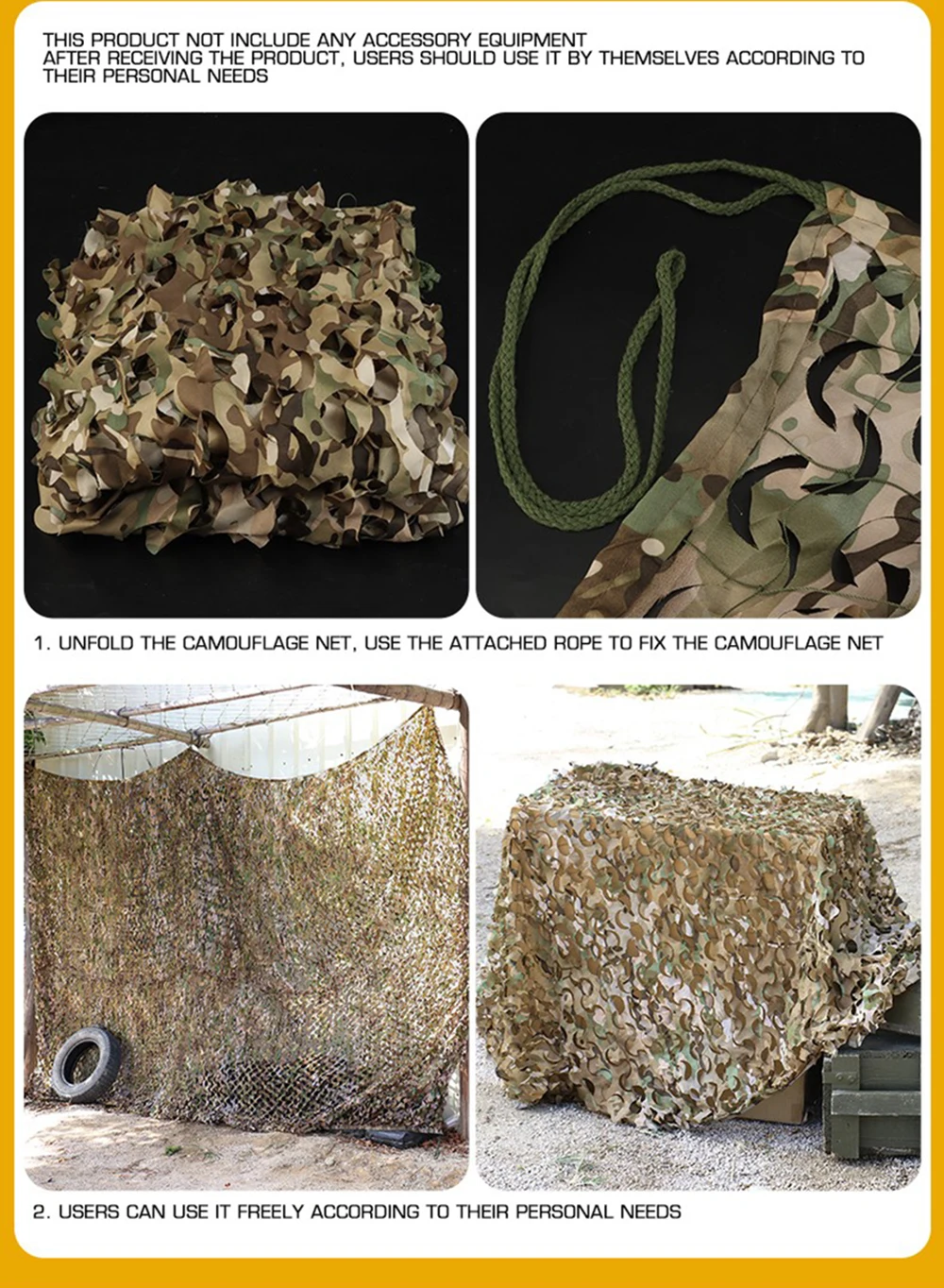 3 muchos usos: actividades militares, decoración del hogar, caza, juegos de paintball, observación de aves, camping, cobertura de automóviles, fotografía, casas en los árboles, pantalla de privacidad de cercas, Halloween, Navidad, Año Nuevo, etc.