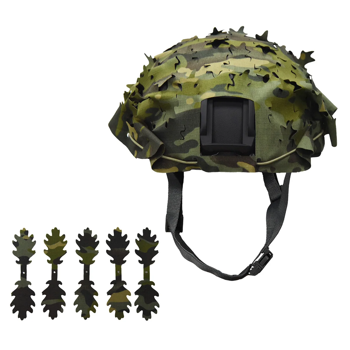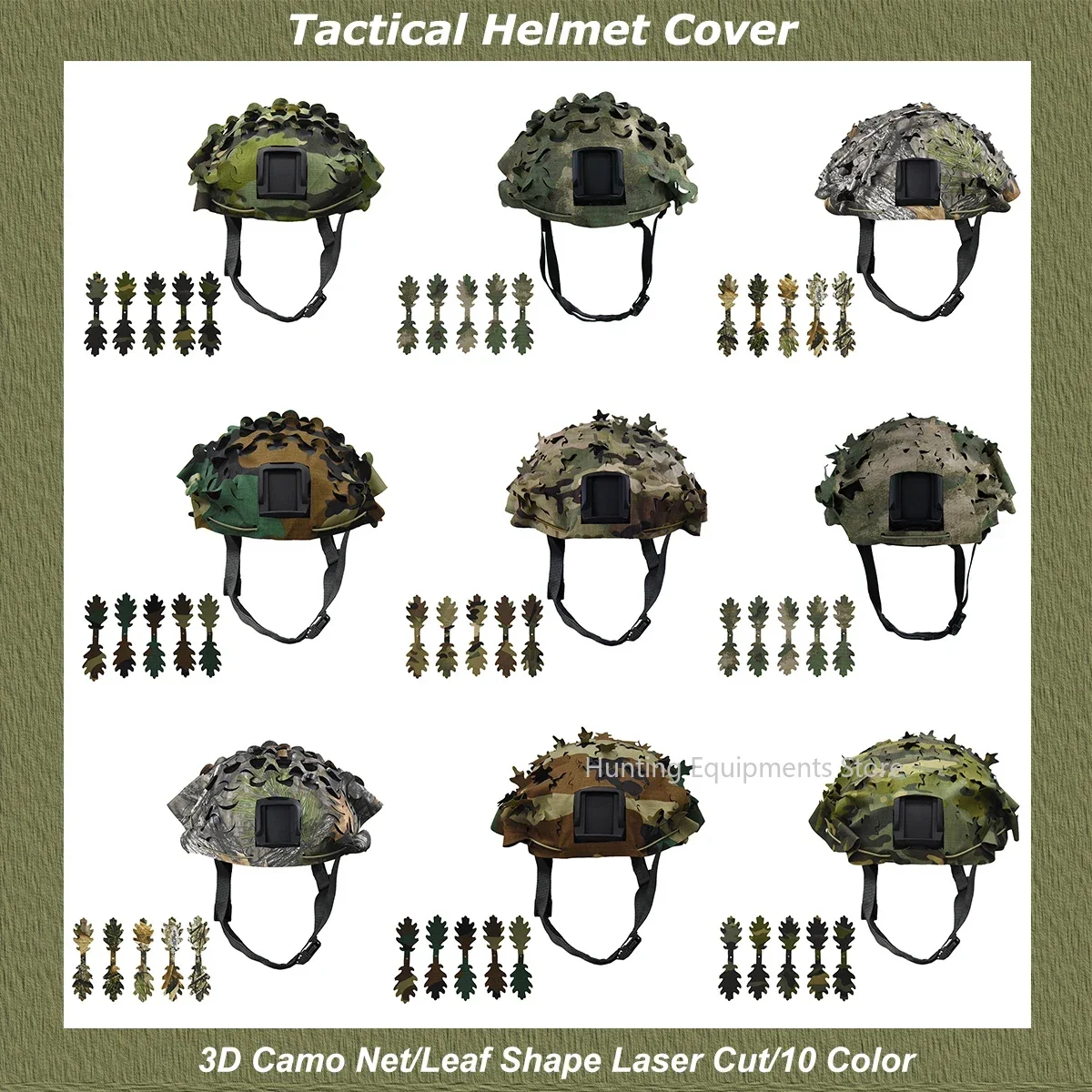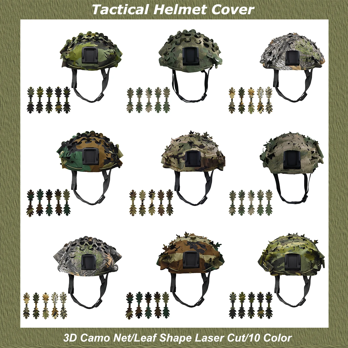 Cubierta de casco Airsoft con red de camuflaje 3D, forma de hoja, corte láser, cordón de nailon, Paintball táctico, paracaidista, accesorios de caza