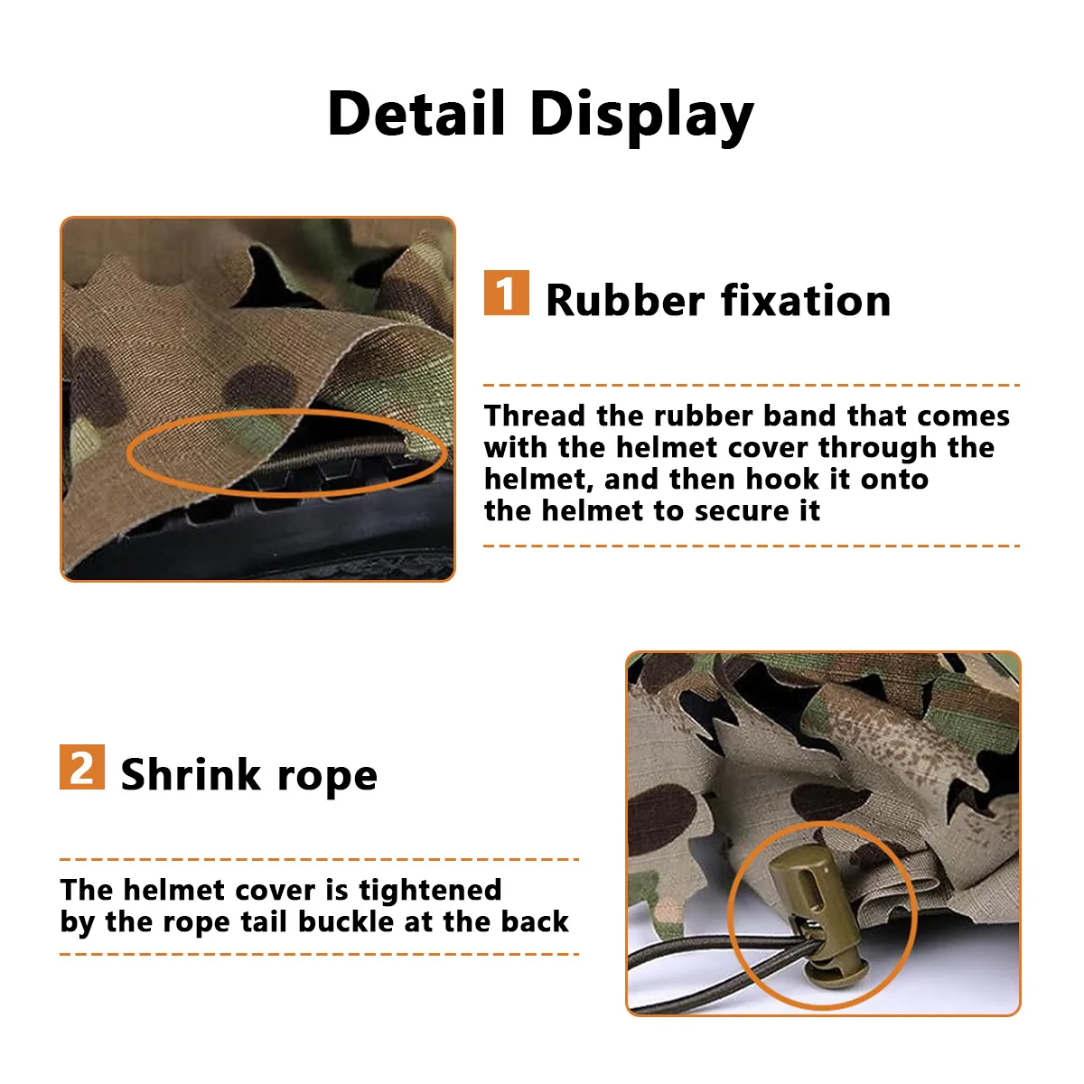 3.Montaje sencillo: pase la banda elástica de la funda del casco a través del casco, engánchela al casco para fijarla y apriétela según sus preferencias.