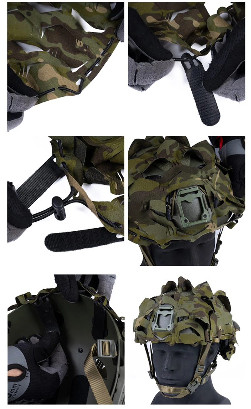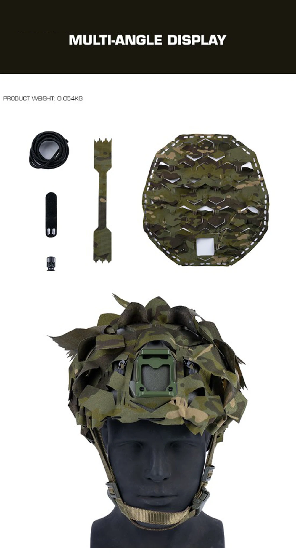 Red de camuflaje 3D, funda para casco Airsoft, corte láser, táctico, de corte alto y rápido, cubierta para casco balístico para tiro de caza