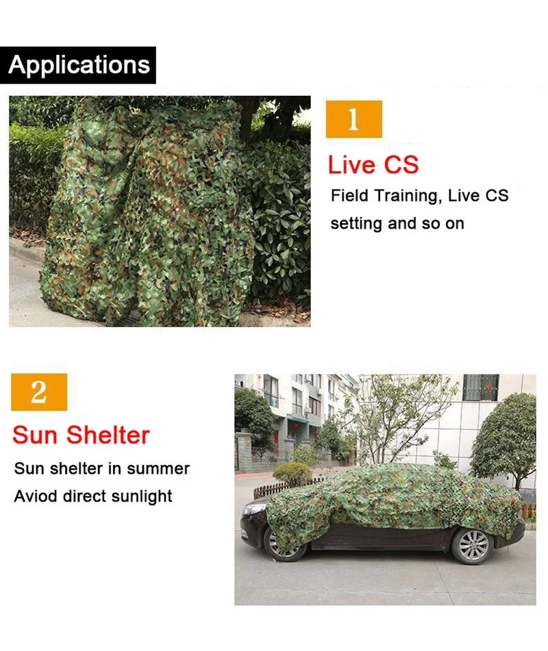 Nota: La red de camuflaje de más de 1,5 M necesita coser las rejillas y esto es normal, por favor comprenda.