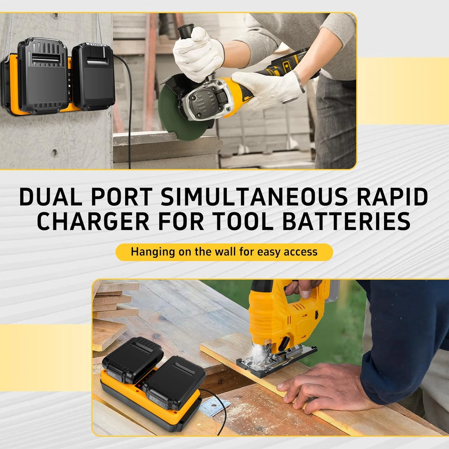 【Cargador de doble puerto】Entrada: 100v-240V, 50/60Hz| Salida: 20 V MAX 2,0 Ah; El cargador de doble puerto puede cargar dos baterías de 20 V al mismo tiempo, lo que ahorra mucho tiempo de carga.