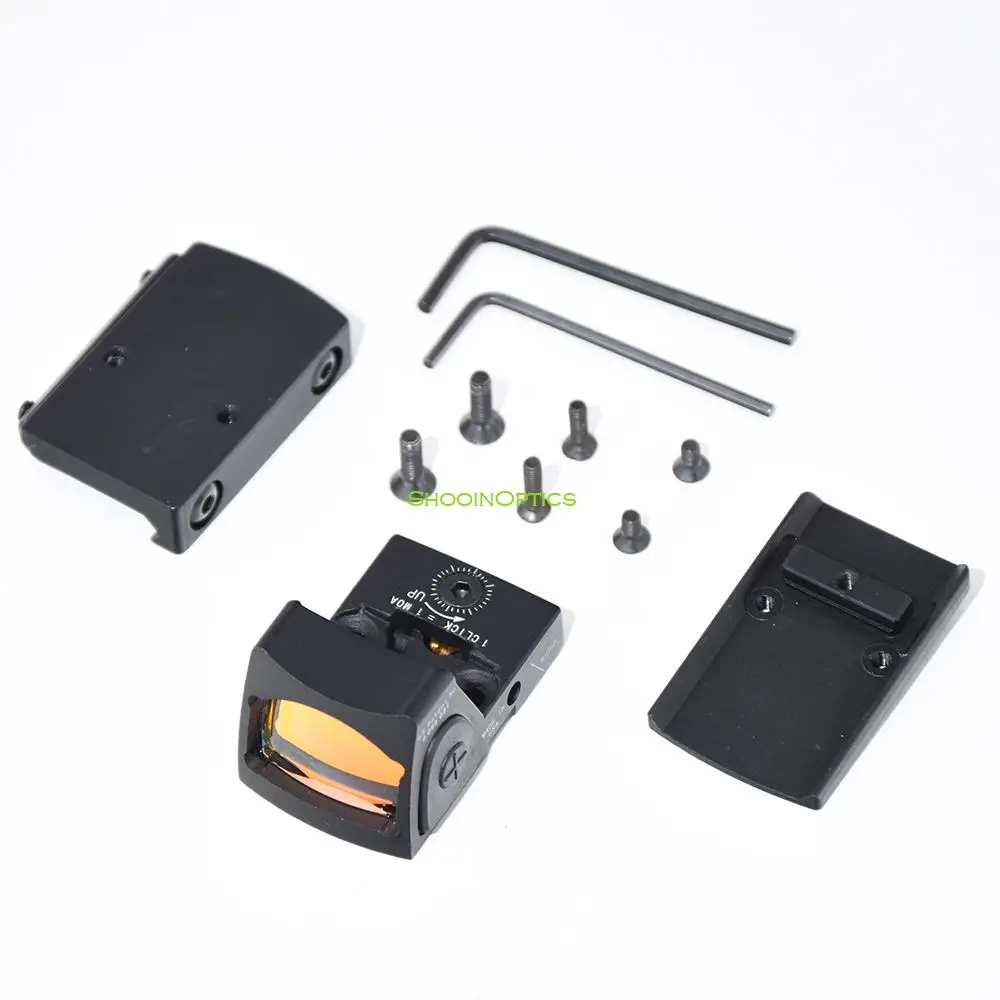 El mini colimador Reflex 1x Red Dot Sight con Glock MOS y base de montaje de 20 mm TRMR es una mira táctica compacta y de primera calidad diseñada para apuntar de alto rendimiento.Esta mira refleja ofrece una rápida adquisición de objetivos con su aumento de 1x y un punto rojo nítido y ajustable para disparos de precisión.La mira es compatible con los sistemas Glock MOS y cuenta con una base de montaje de 20 mm para una fácil instalación en la mayoría de los rifles y escopetas.