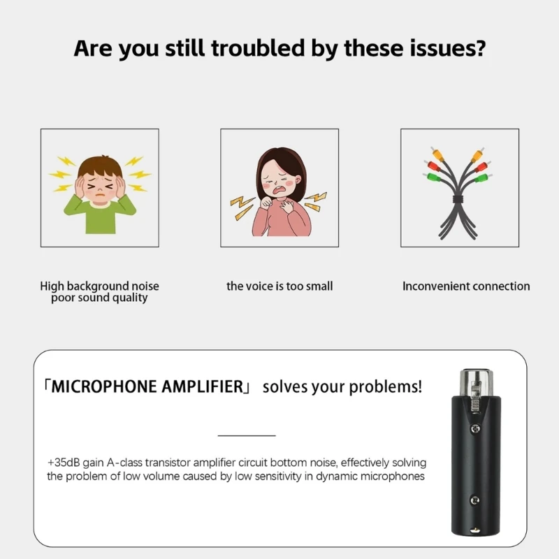 Adecuado para músicos, podcasters e ingenieros de audio que buscan una calidad de sonido mejorada de los micrófonos de baja sensibilidad.
