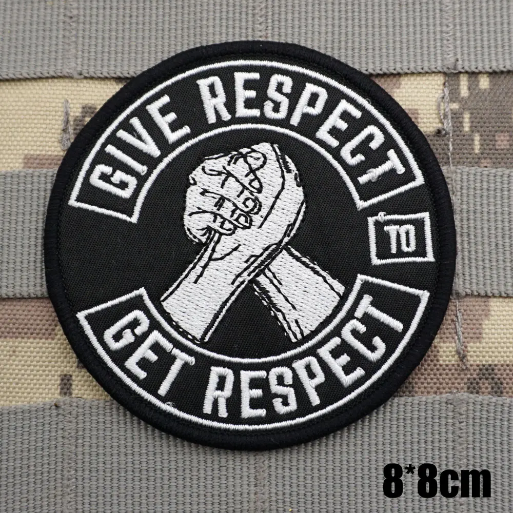 Regalar a conseguir el respeto Parches bordados Apliques Etiqueta de costura punk biker Band Rock Ropa Insignias con gancho en la parte posterior