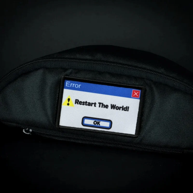 ¡Reinicie el mundo!Parche de impresión para chaleco táctico, insignia de moral de gancho y bucle, pegatinas decorativas para mochila, parches para brazalete para ropa