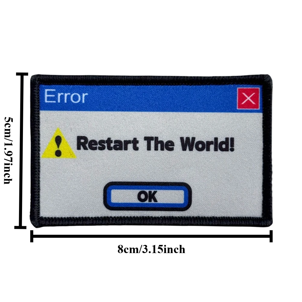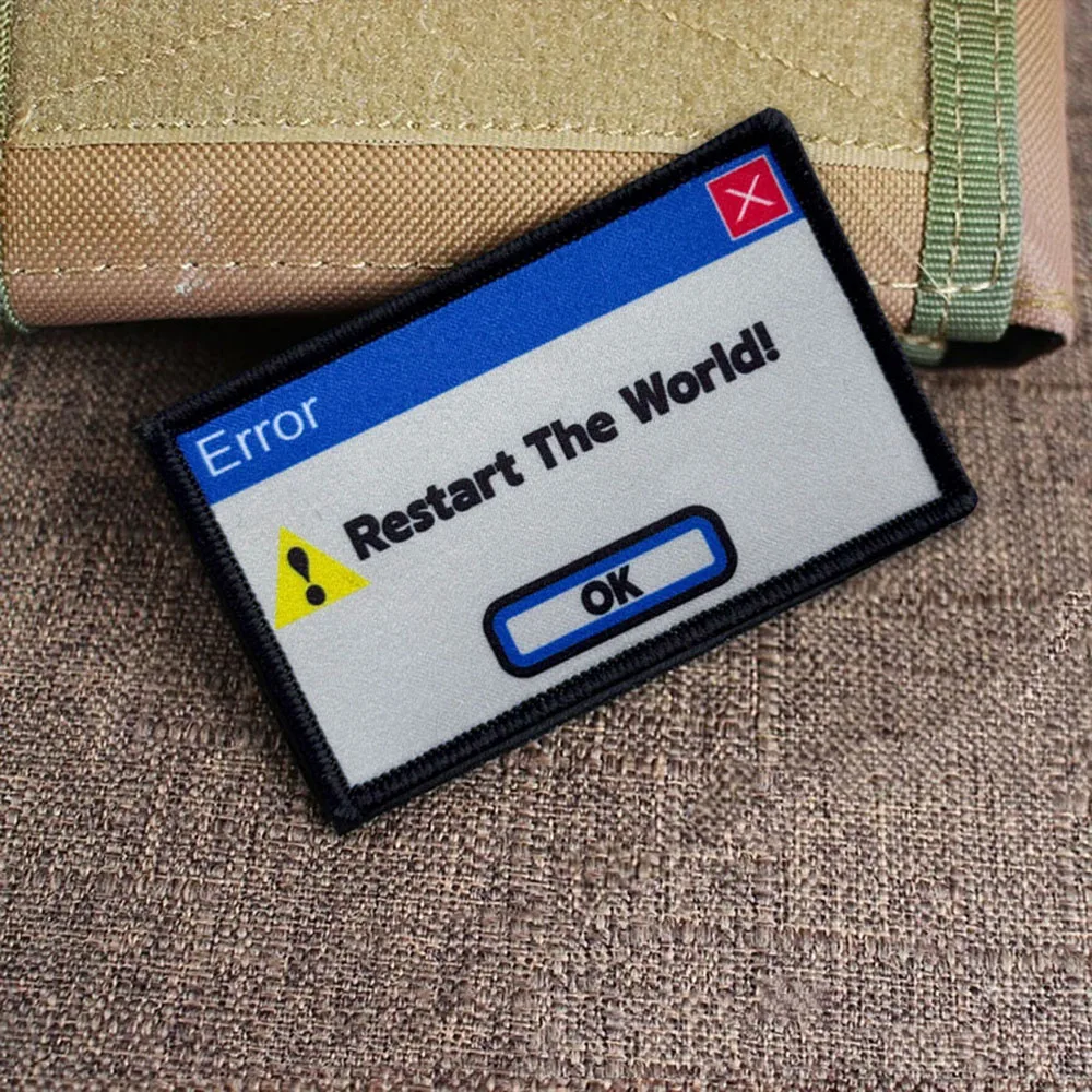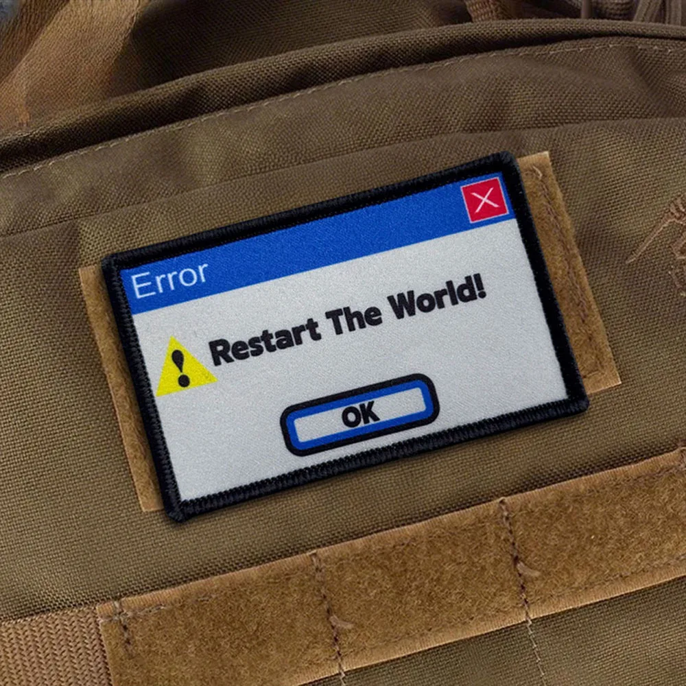 ¡Reinicie el mundo!Parches Meme, parche de gancho y bucle, brazalete Moral, insignia de moral del ejército militar, pegatinas tácticas para mochila1.Debido a las diferentes resoluciones de los dispositivos electrónicos, el color puede ser ligeramente diferente al color real.